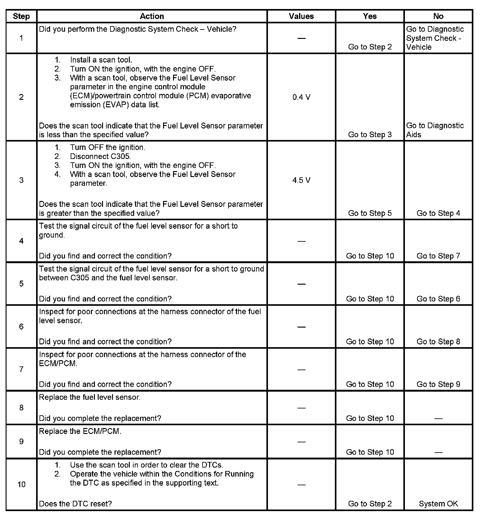 DTC P0462 Fuel Level Sensor Circuit Low Voltage