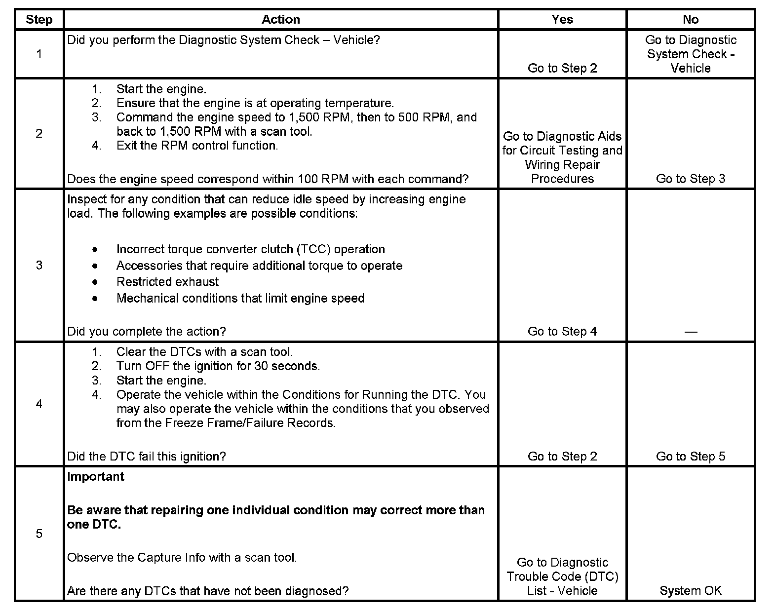 2. This test determines whether the engine can achieve the commanded RPM. If the engine does not reach the commanded RPM, the test determines whether the RPM is too high or too low.