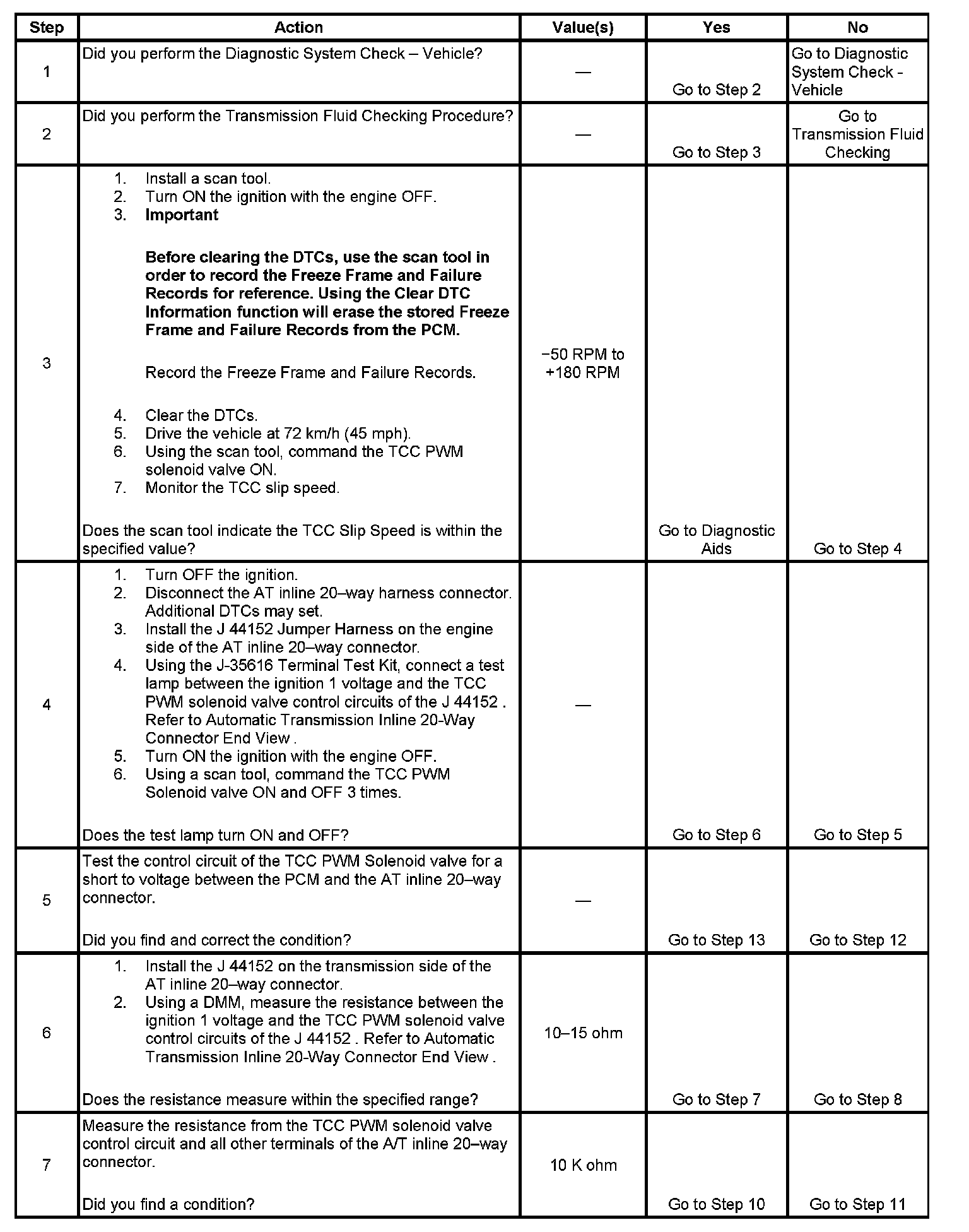3. This step verifies that the TCC engages when commanded ON by the scan tool.