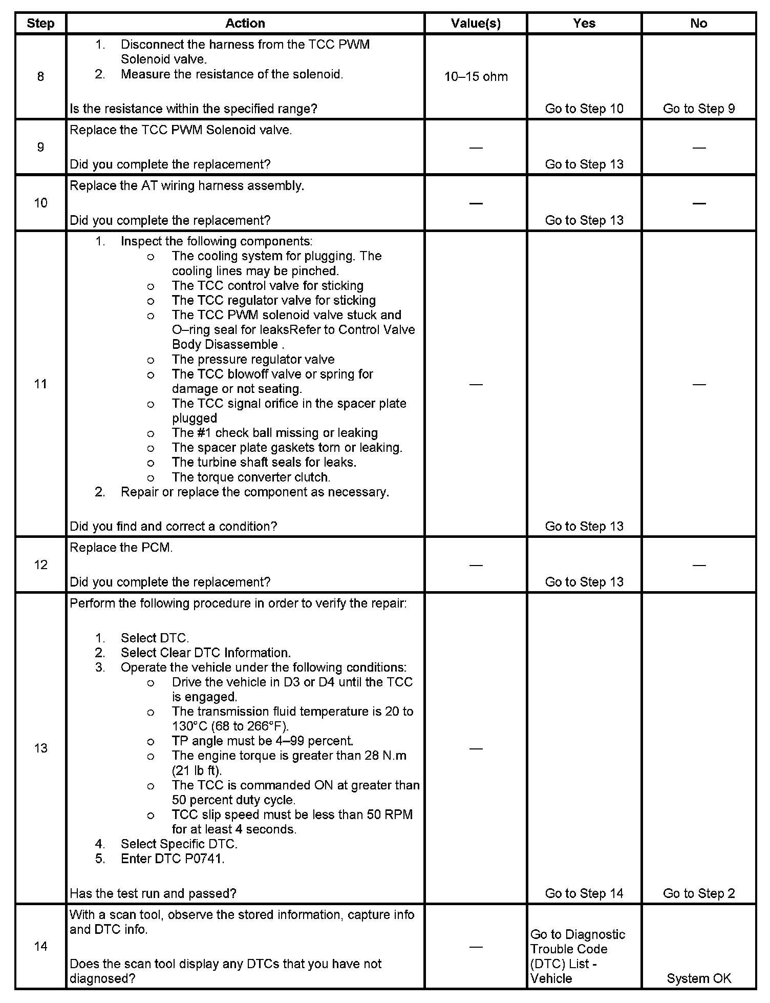 DTC P0741 Torque Converter Clutch (TCC) System - Stuck Off
