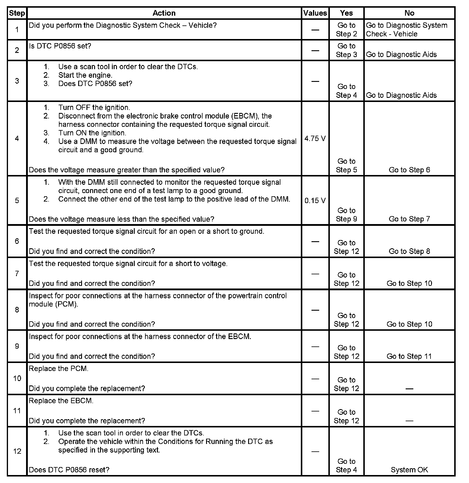 ^ DTC P0856 Traction Control Torque Request Circuit