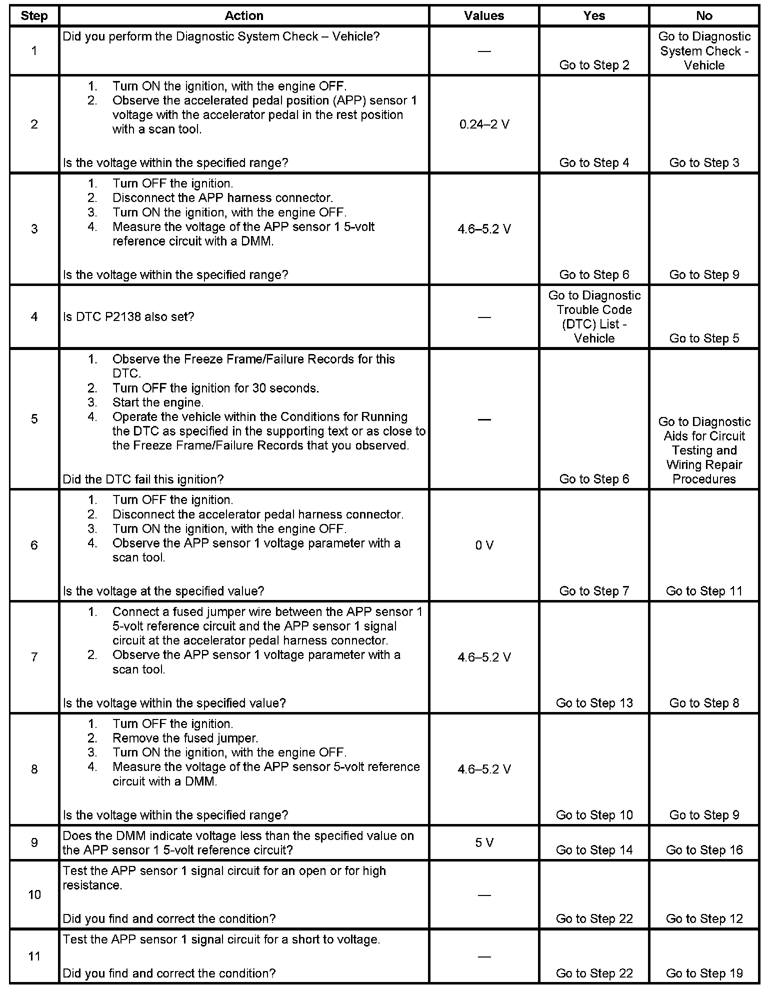 DTC P2120 Accelerator Pedal Position (APP) Sensor 1 Circuit