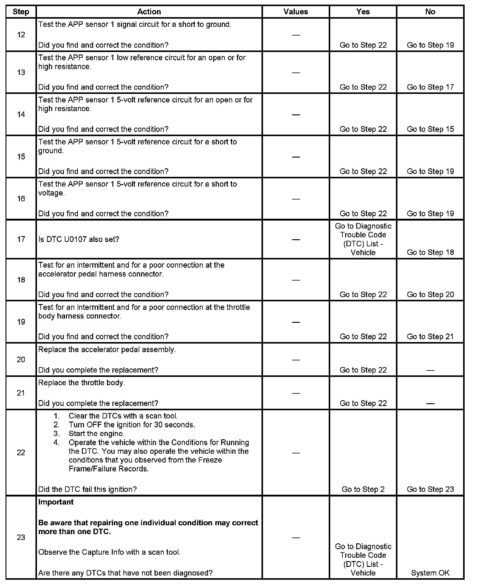 - The APP sensor 1 voltage is less than 0.235 volt or more than 4.487 volts. OR