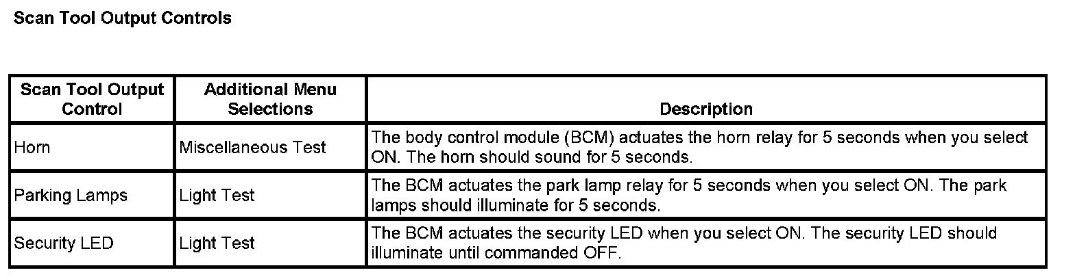 Scan Tool Output Controls: