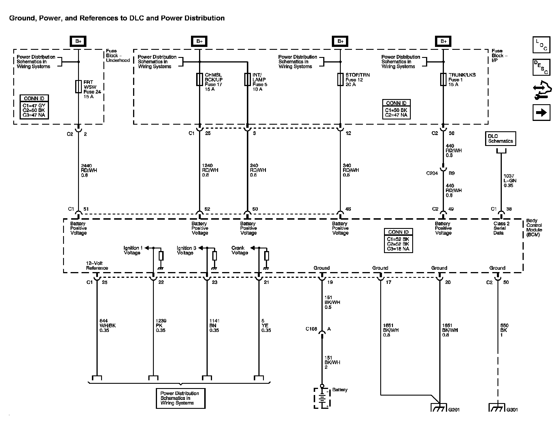 Location: The locations for the Connectors, Grounds, Splices, and Grommets shown within these diagrams can be found via their numbers at Vehicle Locations. Locations