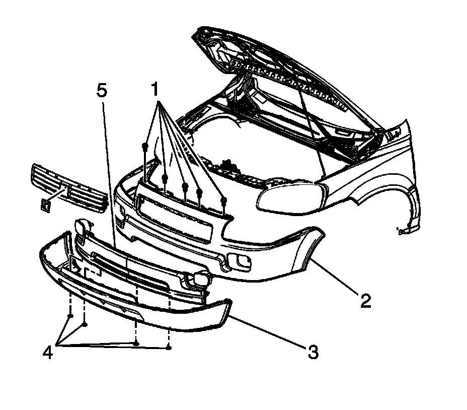 3. Remove the energy absorber (5) from the lower fascia (3).