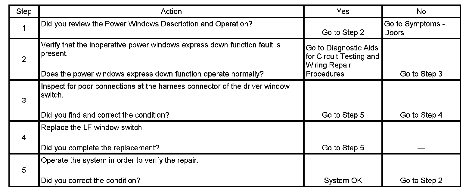 Power Windows Inoperative - Express Down Function