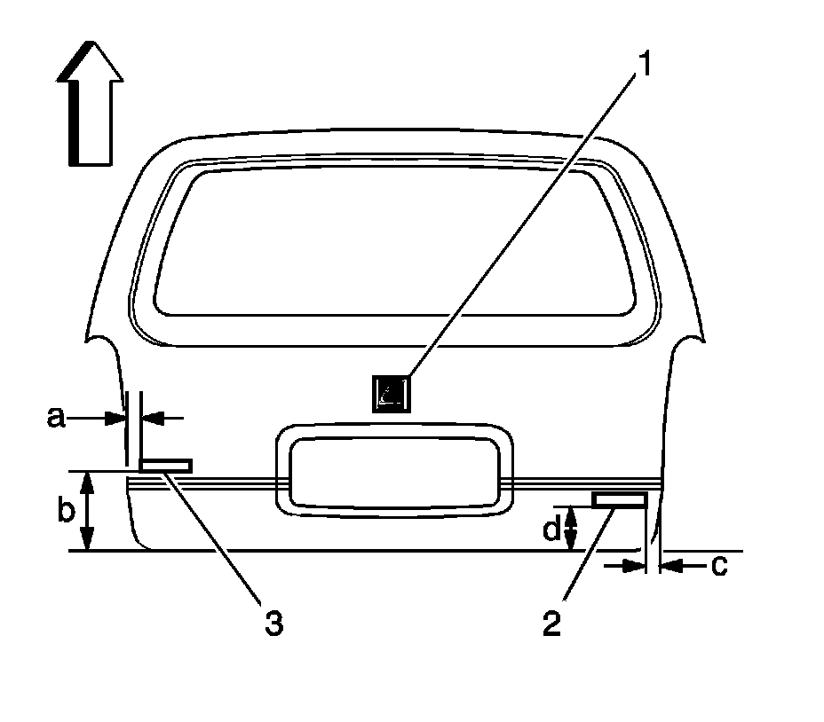* Dimension (d) is 53 mm (2.09 in) from the bottom edge of the liftgate to the bottom edge of the VERSATRAK emblem/nameplate.