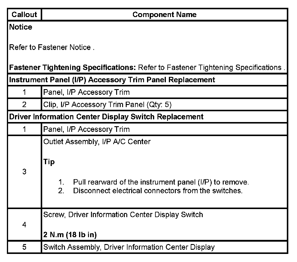 Accessory Trim Plate, Driver Information Display Switch Replacement - Instrument Panel