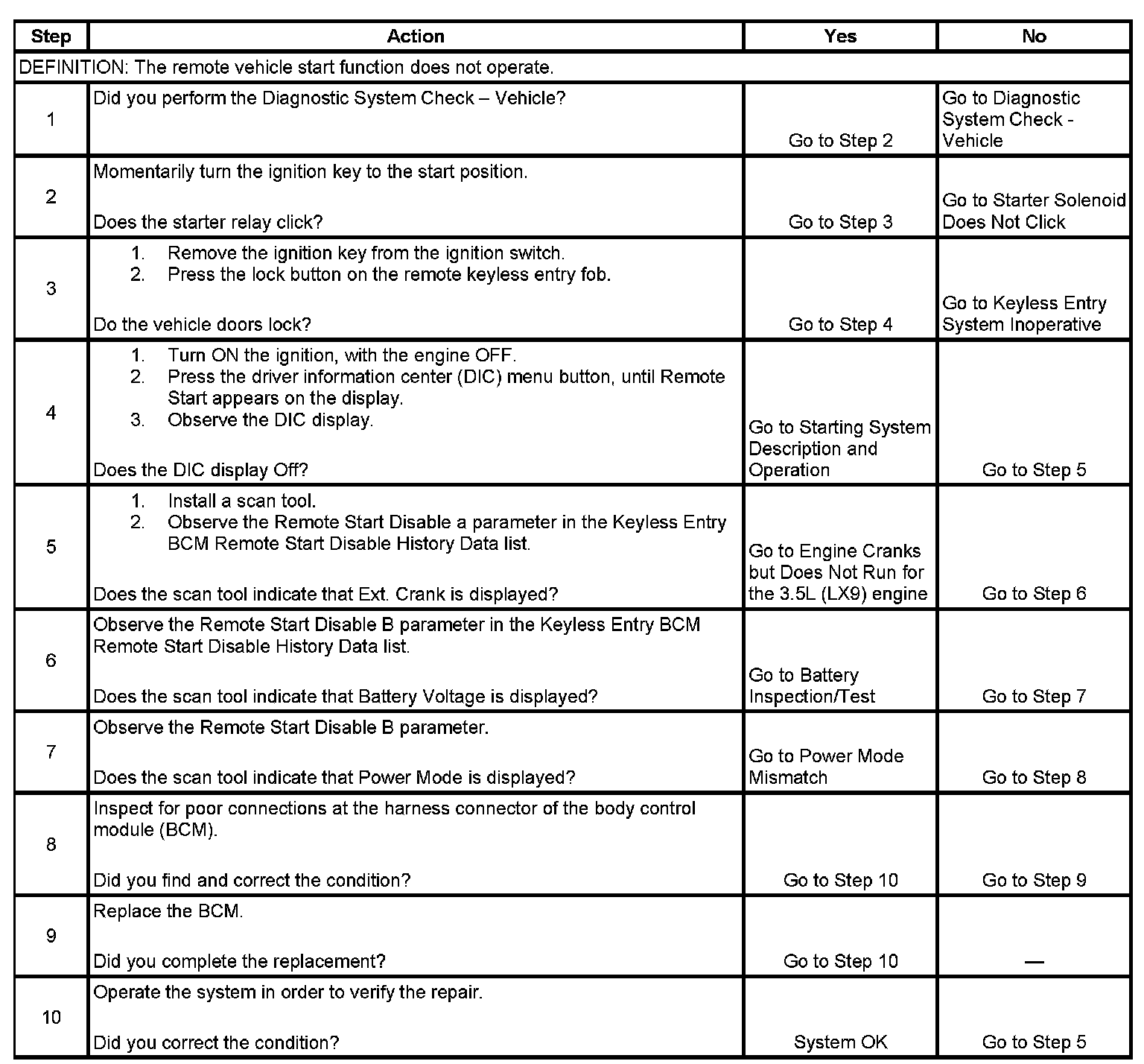 Remote Vehicle Start Inoperative