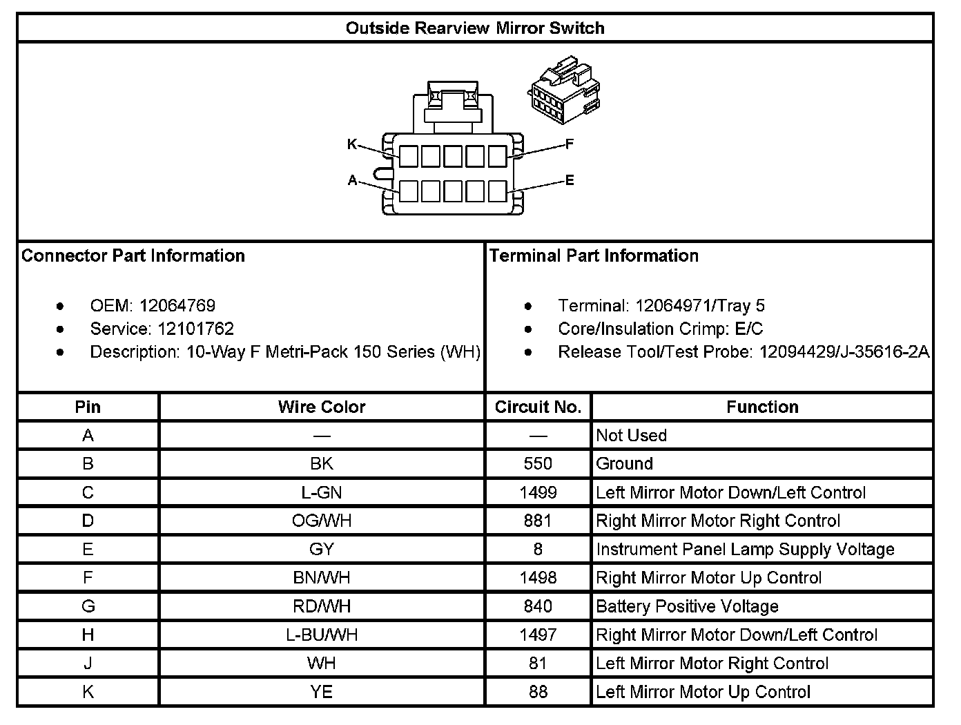 Power Mirror Switch: Diagrams