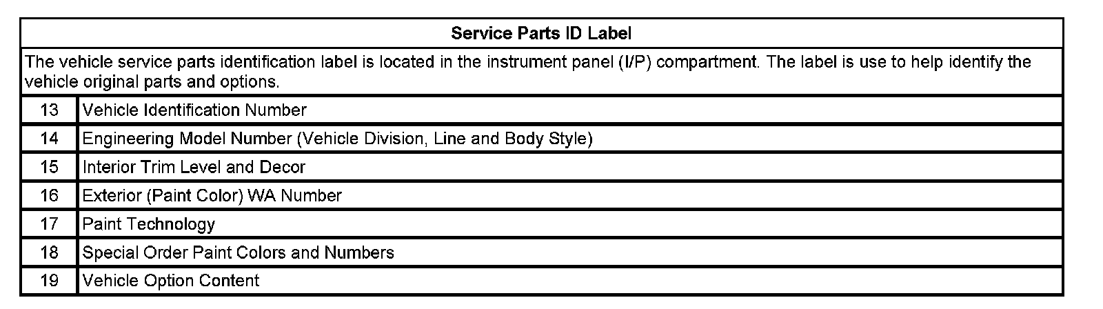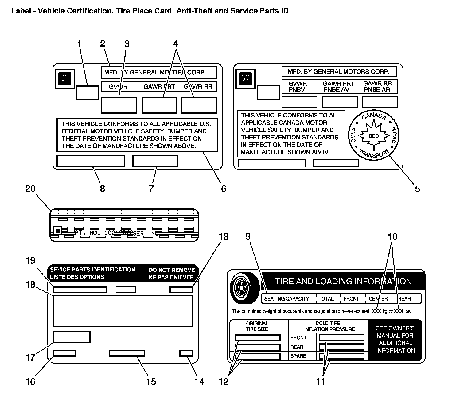 Label - Vehicle Certification, Tire Place Card, Anti-Theft And Service Parts ID: