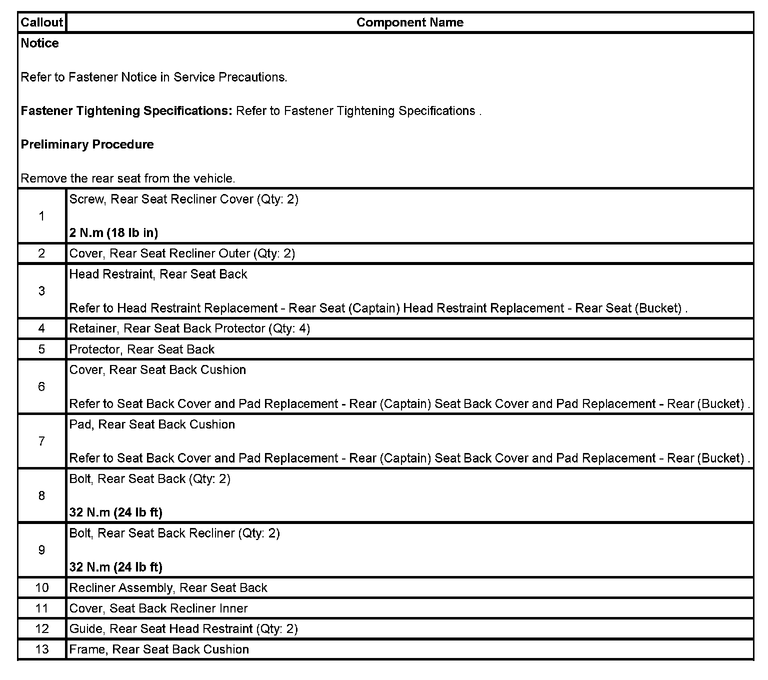 Seat Back Frame Replacement - Rear (Bucket)