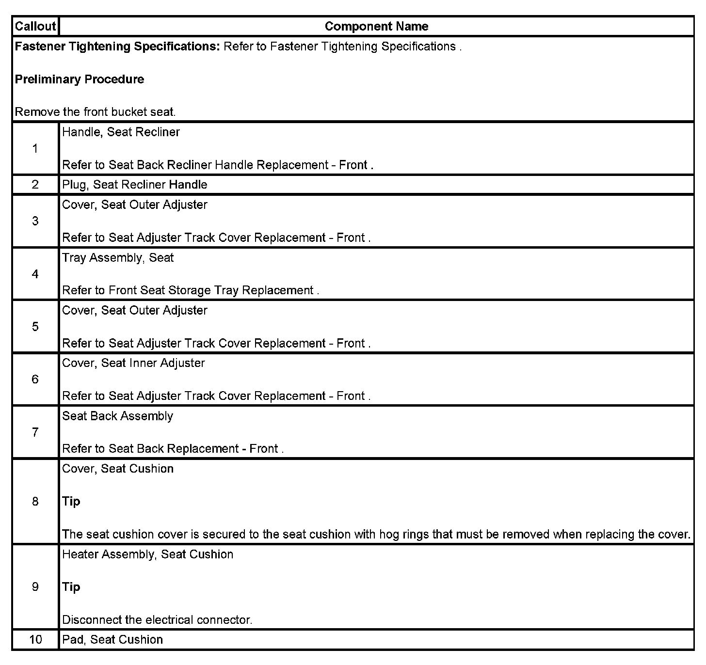 Seat Cushion Heater Element Replacement - Front