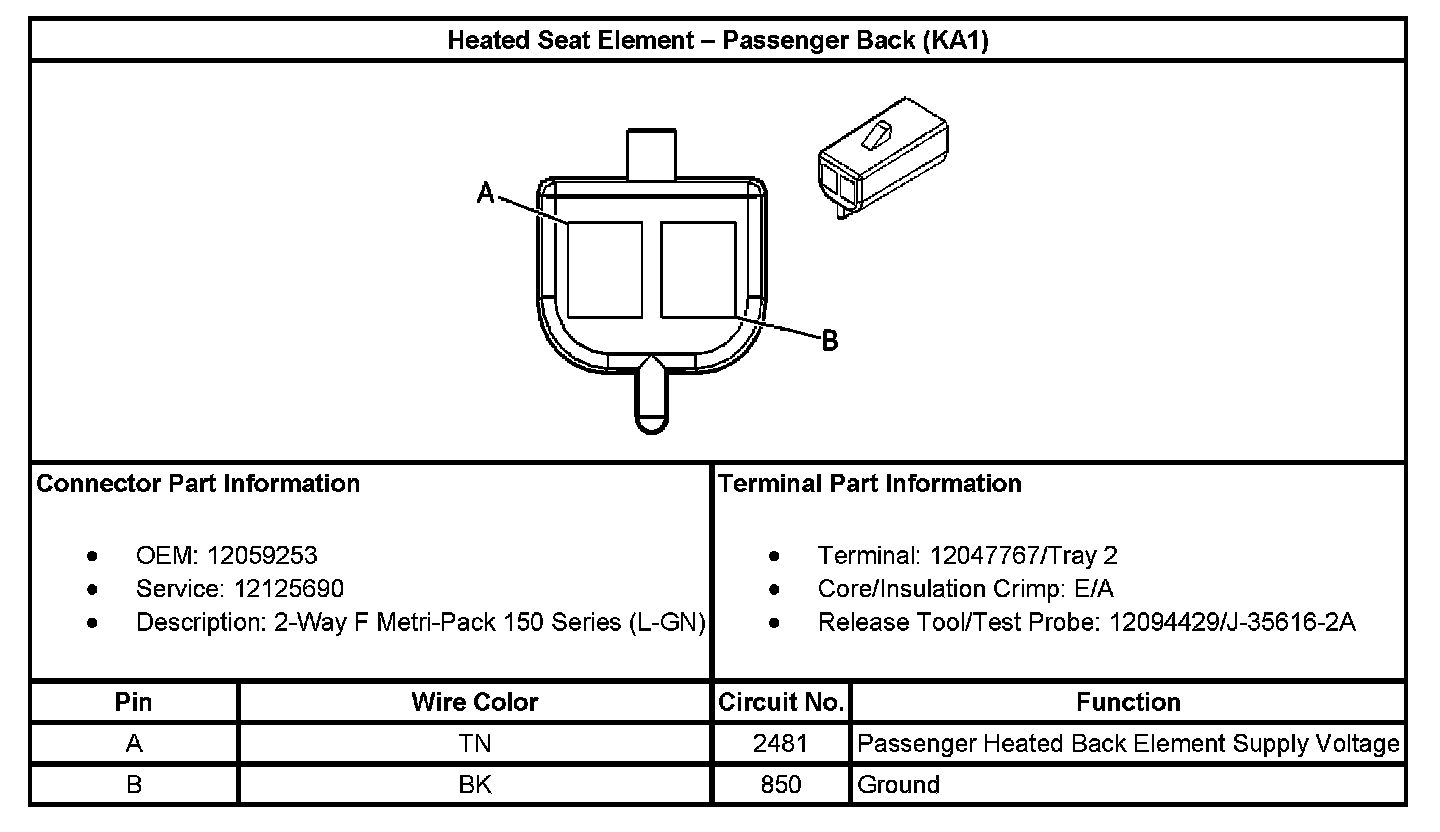 Heated Seat Element - Passenger Back (With RPO Code KA1):