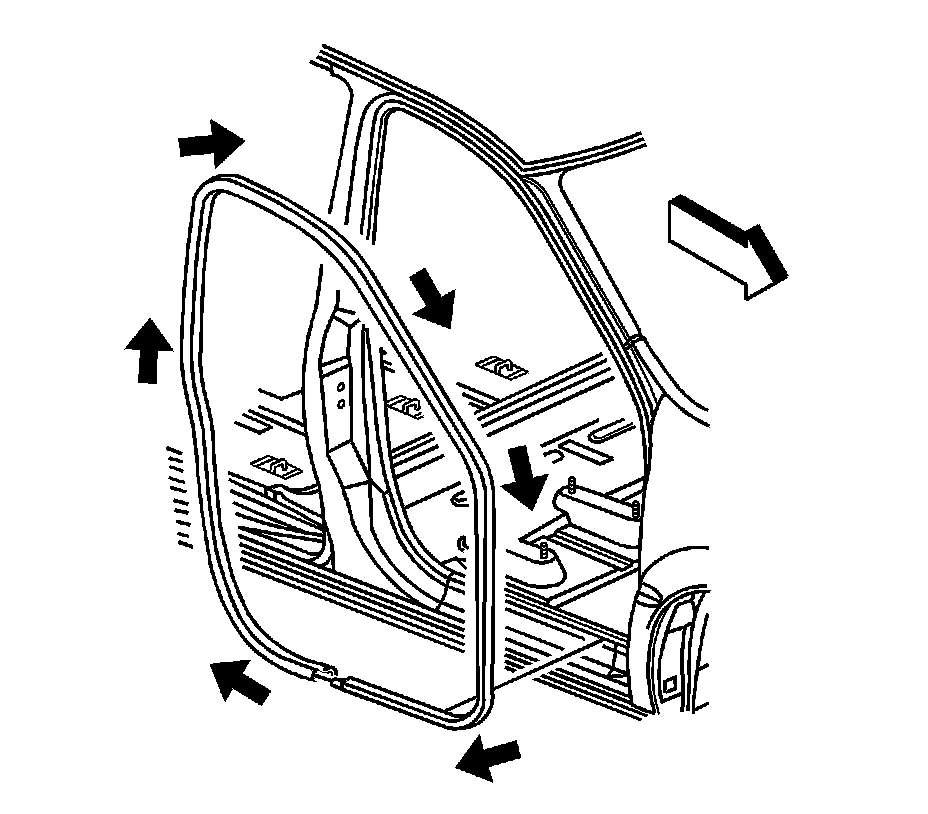 1. Remove the front door opening sill plates. Refer to Door Sill Plate Replacement (Door) (Service and Repair)Door Sill Plate Replacement (Sliding Door) (Service and Repair) .