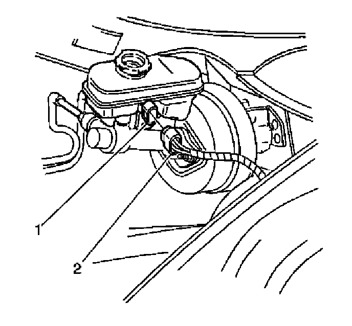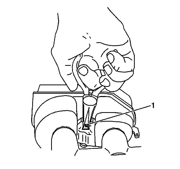 2. Remove the fluid level sensor (1). Use needle nose pliers in order to compress the switch locking tabs at the outboard side of the master cylinder.