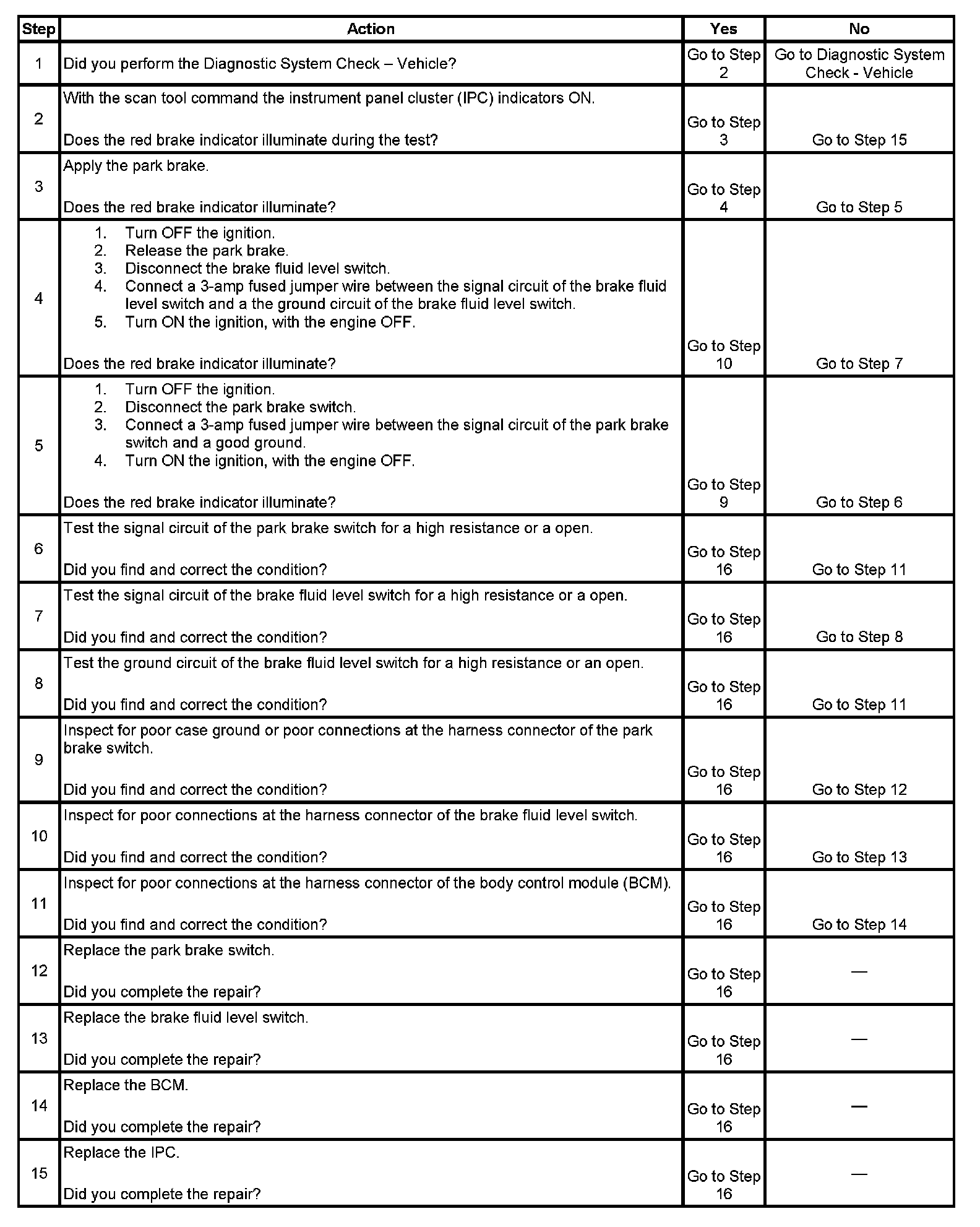 Brake Warning Indicator Inoperative