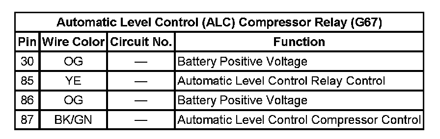 Automatic Level Control (ALC) Compressor Relay (G67):