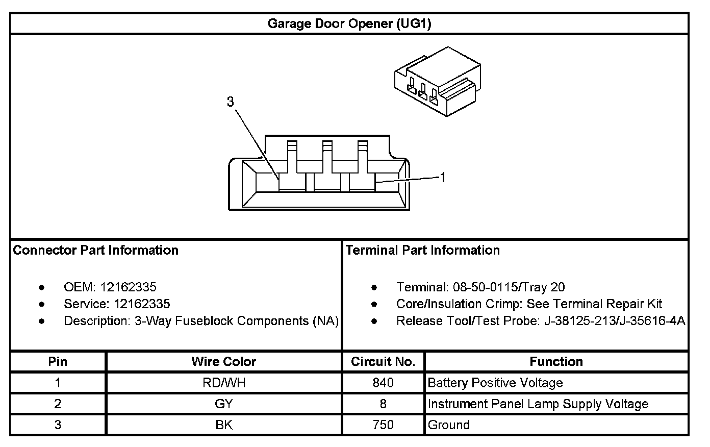 Garage Door Opener (With RPO Code UG1):