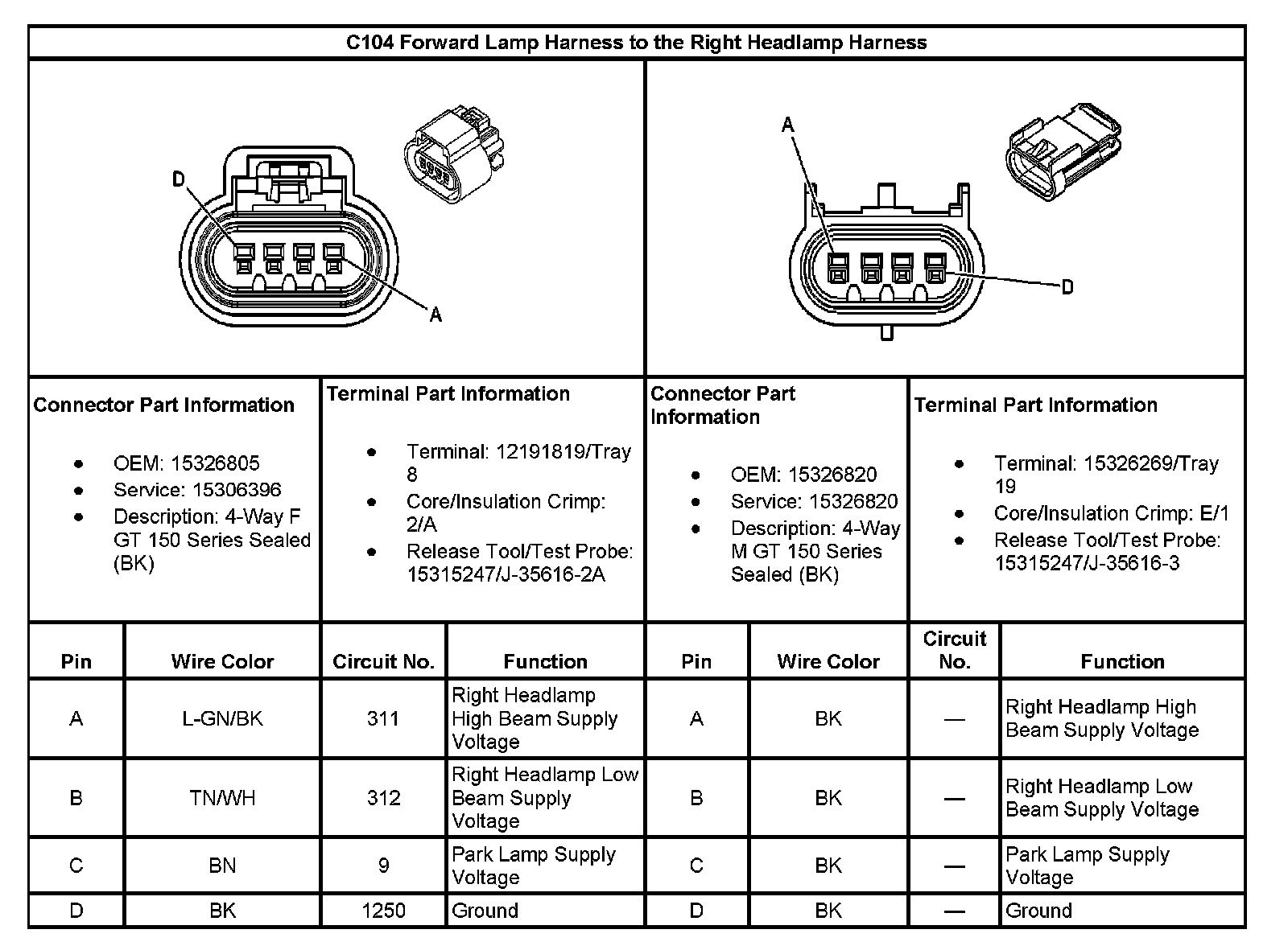 C104 Forward Lamp Harness To The Right Headlamp Harness: