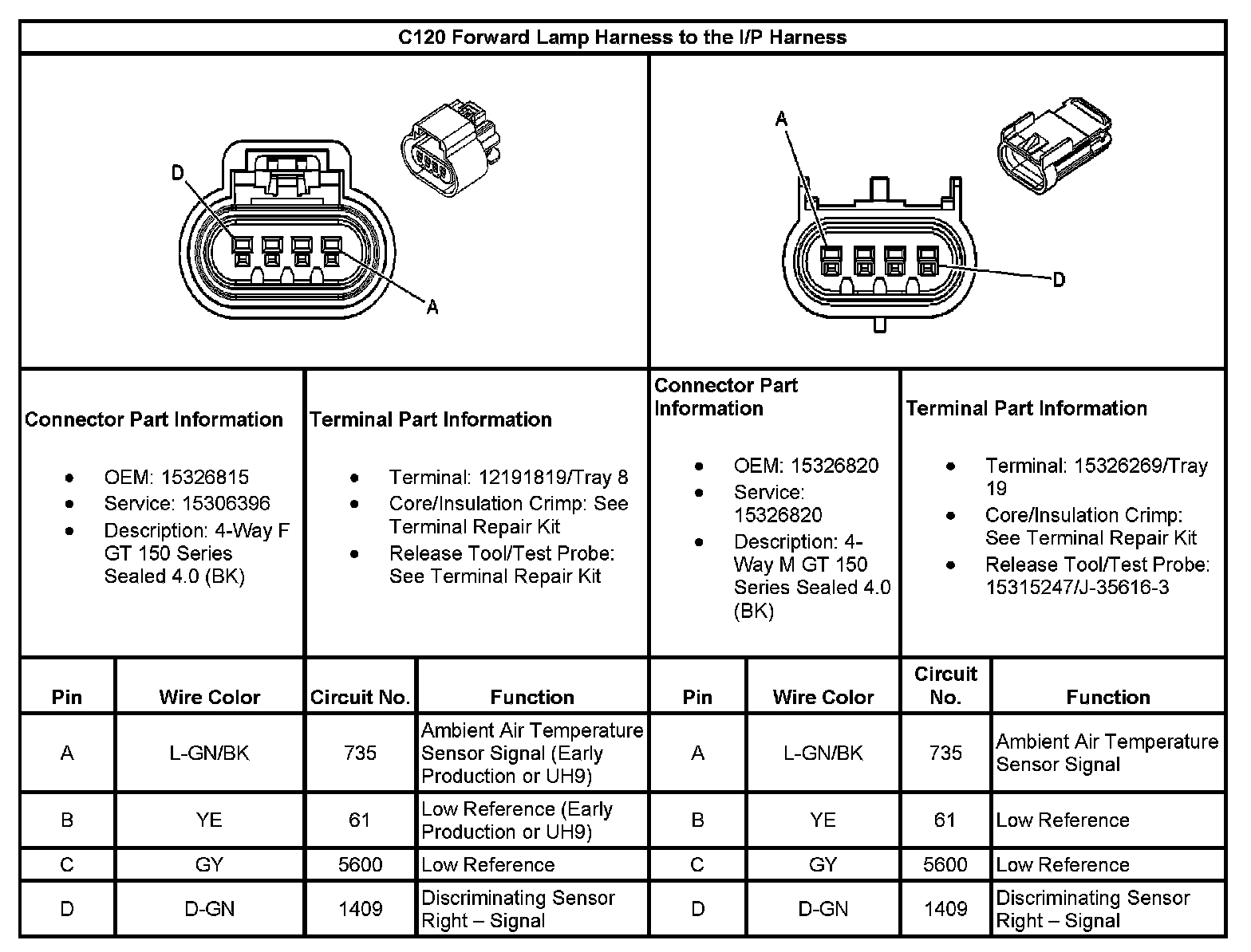 C120 Forward Lamp Harness To The I/P Harness: