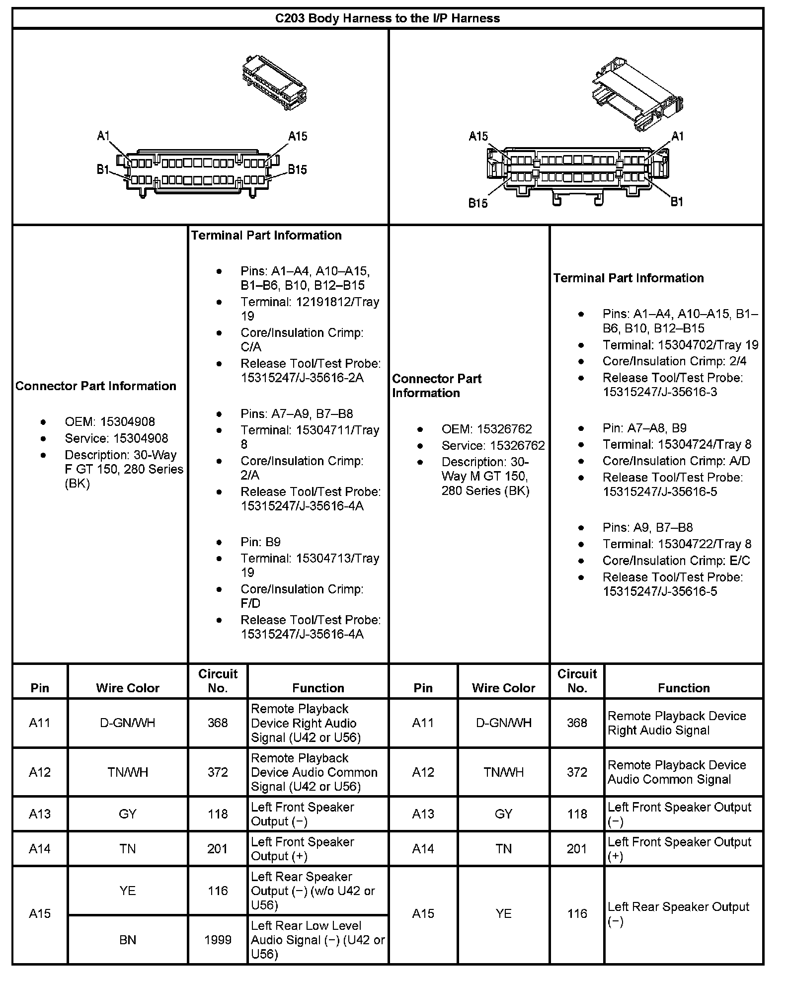 C203 Body Harness To The I/P Harness (Part 1):