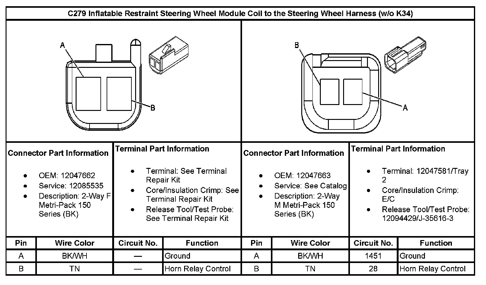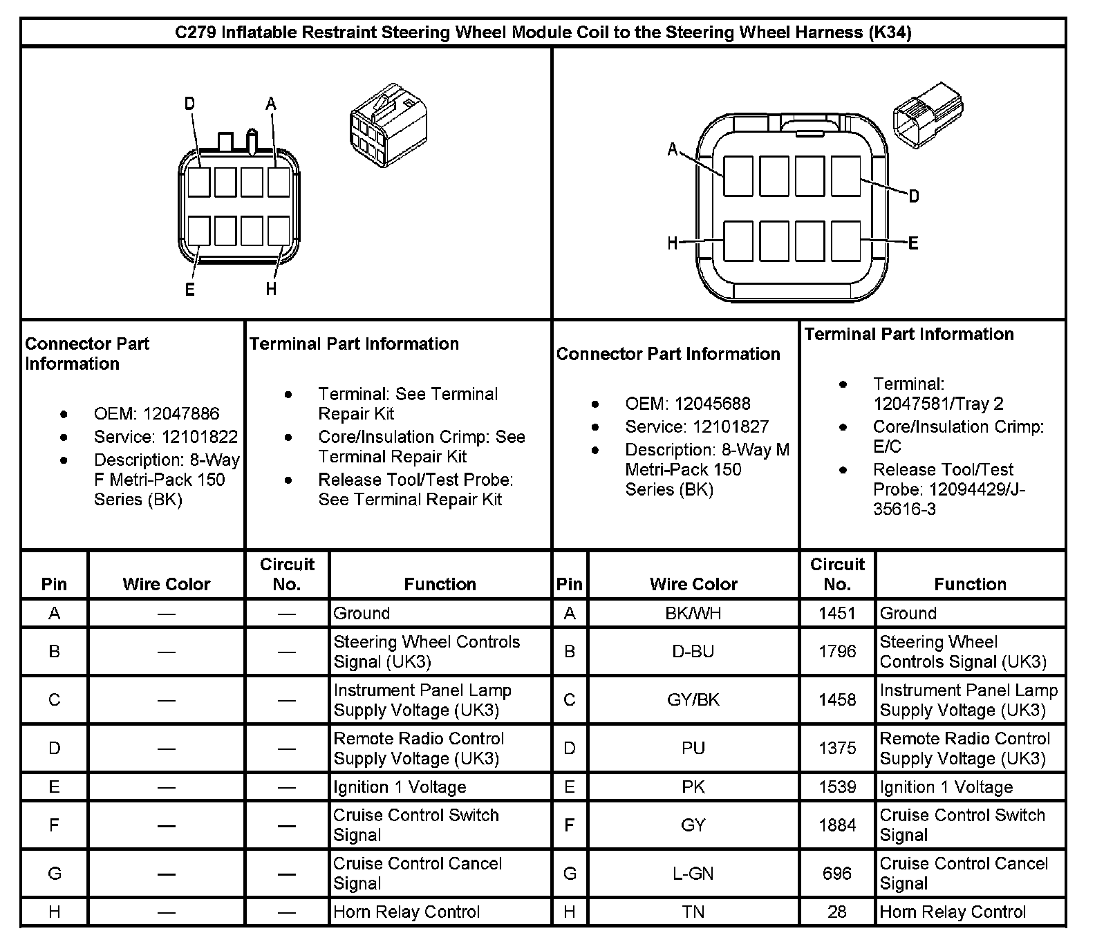 C279 Inflatable Restraint Steering Wheel Module Coil To The Steering Wheel Harness (Without RPO Code K34):