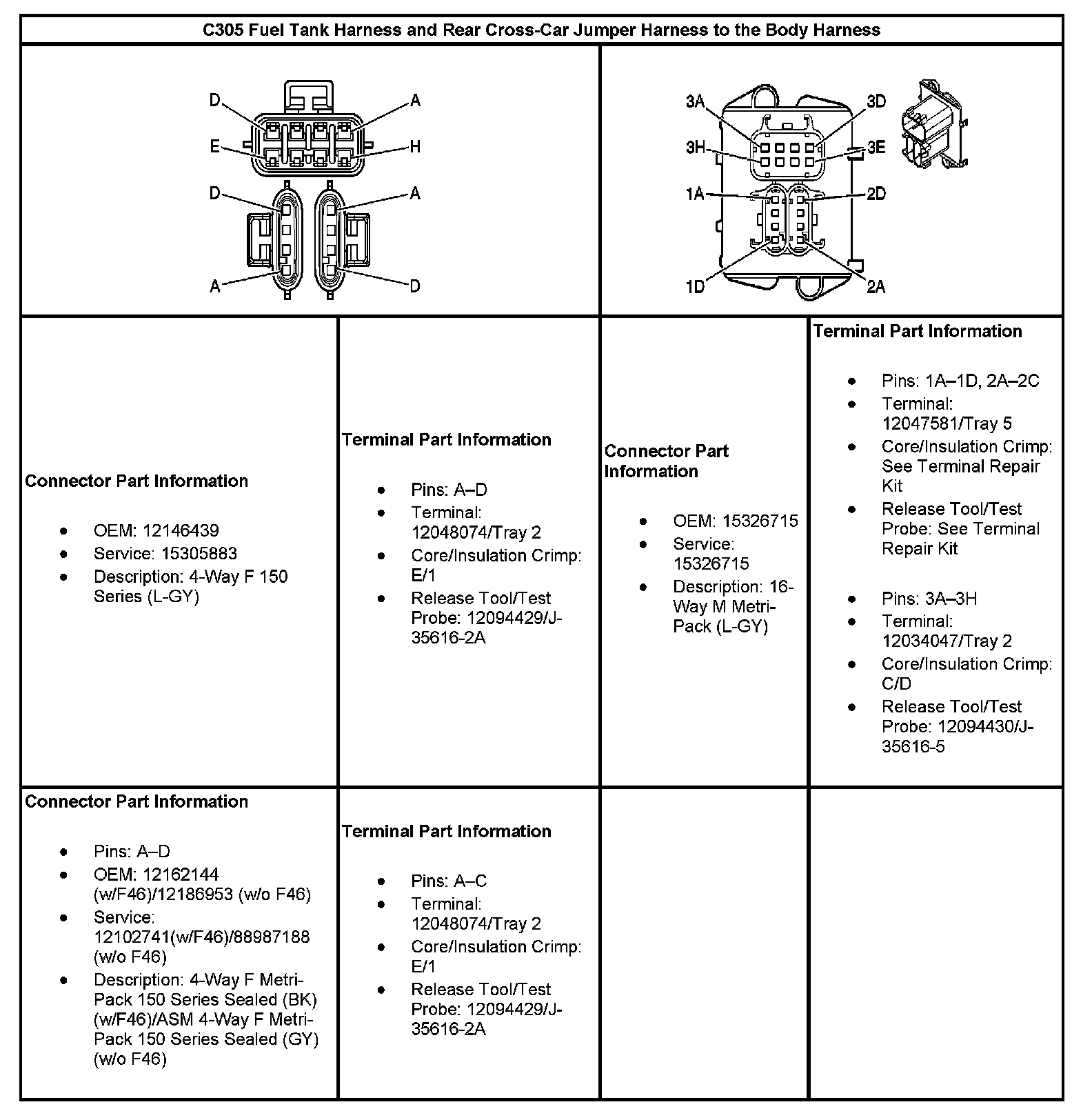 C305 Fuel Tank Harness And Rear Cross-Car Jumper Harness To The Body Harness (Part 1):