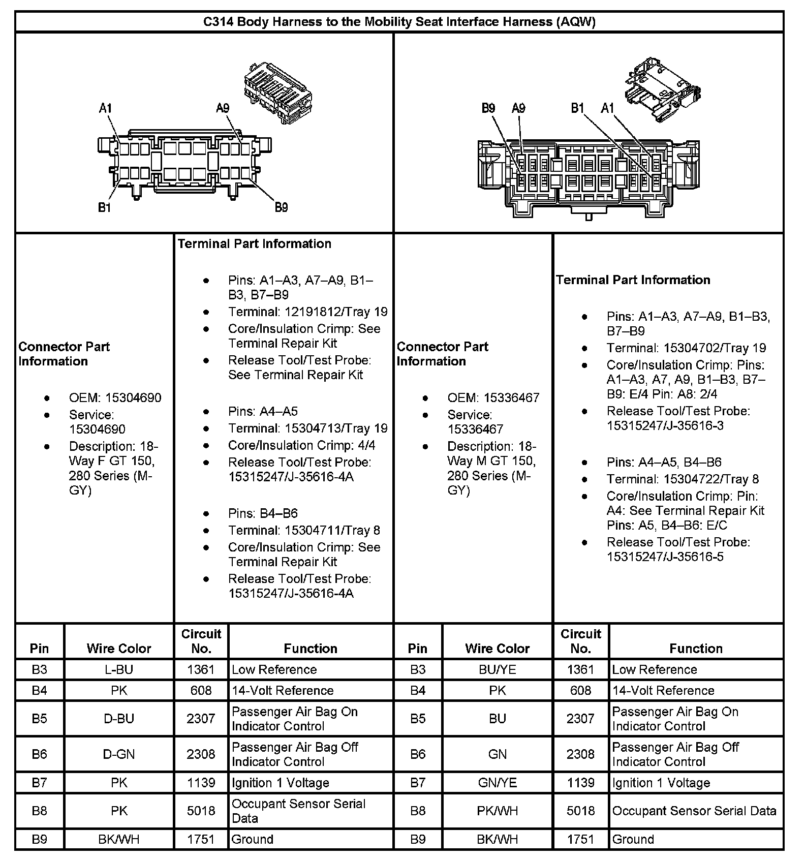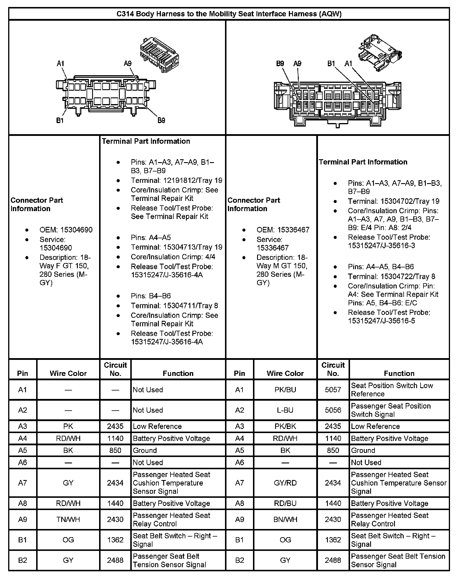 C314 Body Harness To The Mobility Seat Interface Harness (With RPO Code AQW) (Part 1):