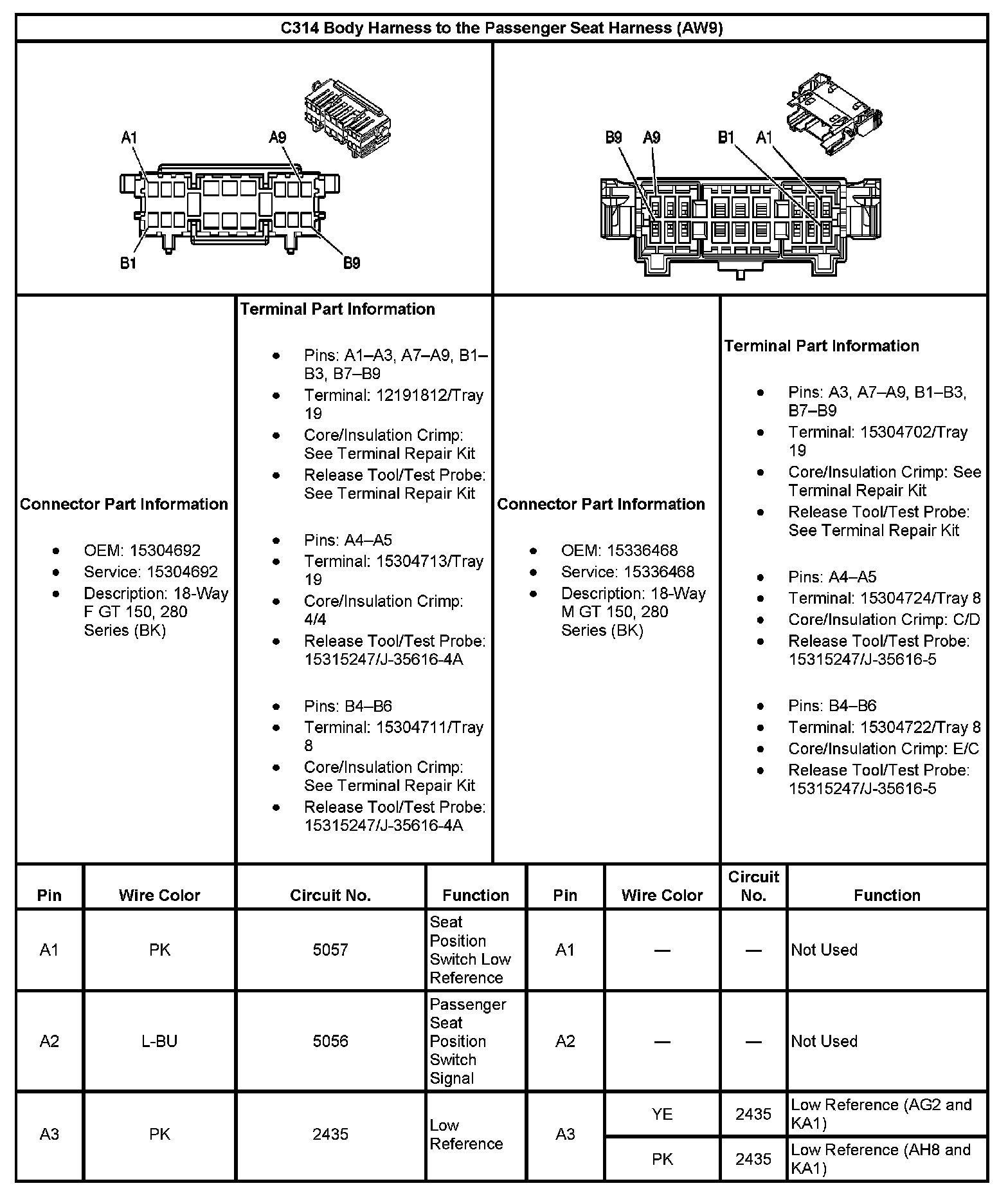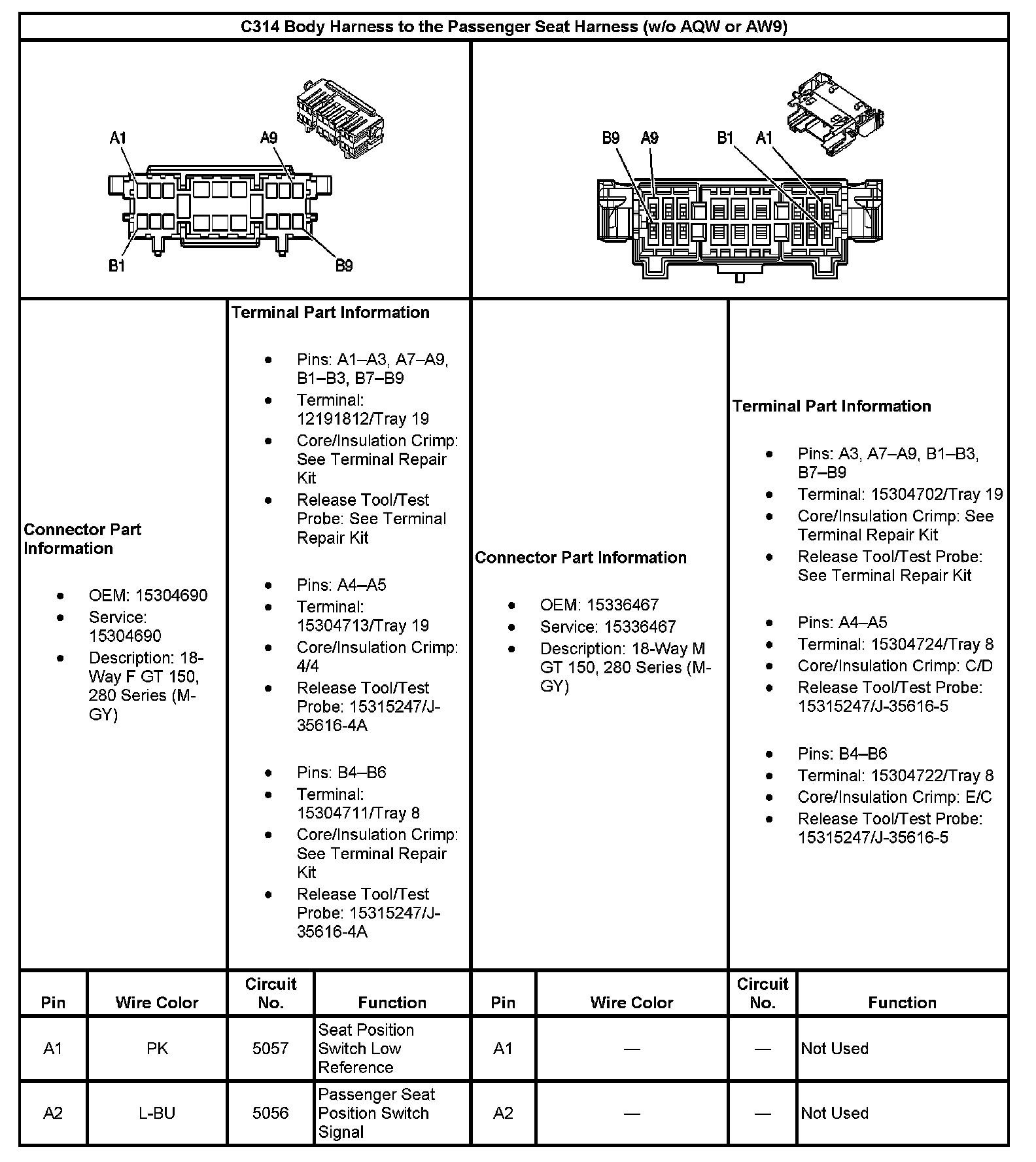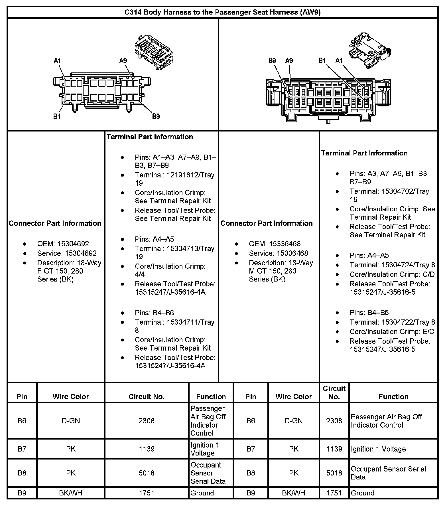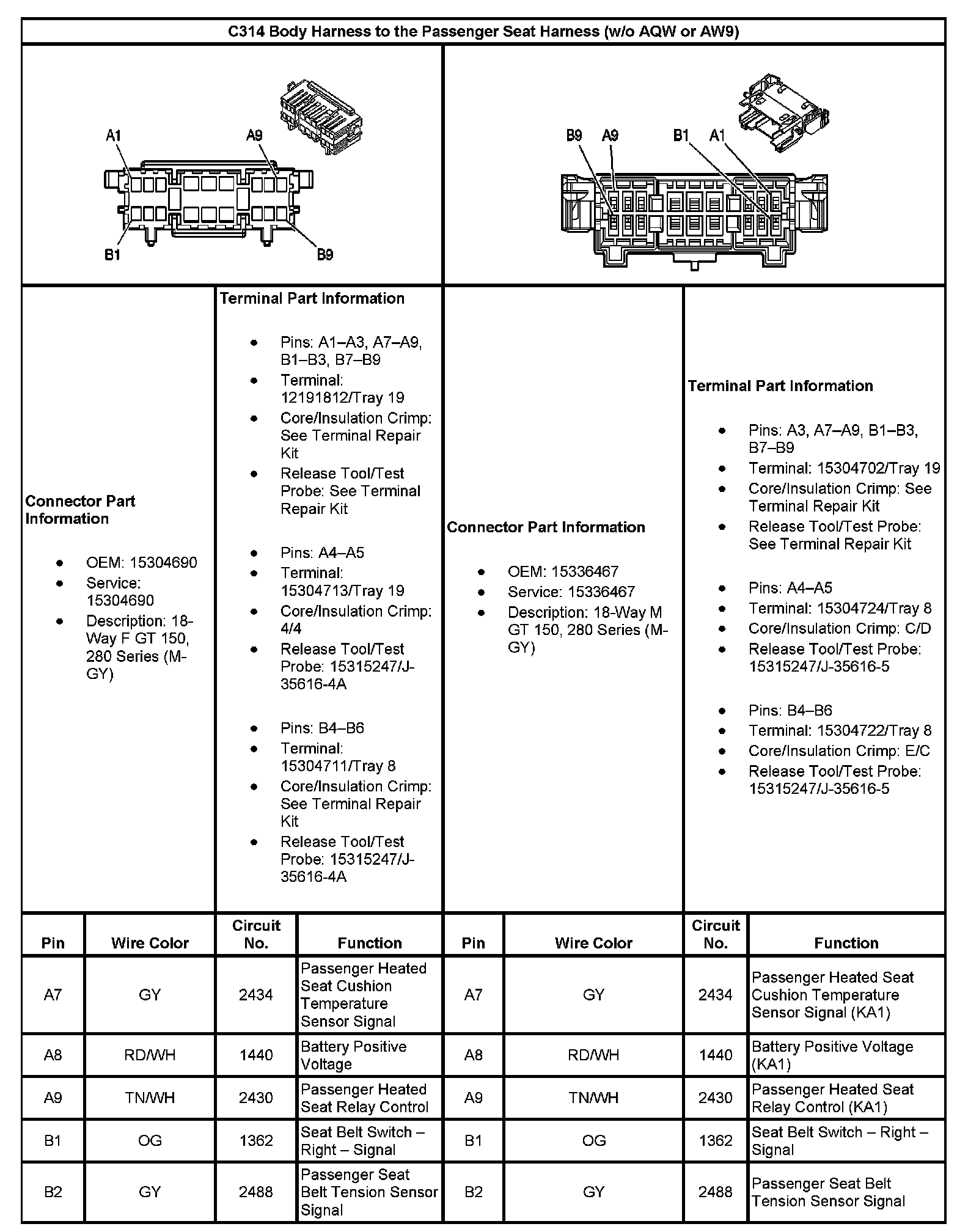 C314 Body Harness To The Passenger Seat Harness (With RPO Code AW9) (Part 2):