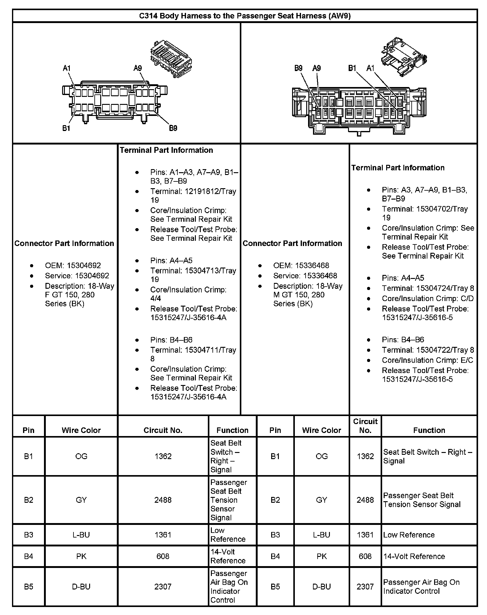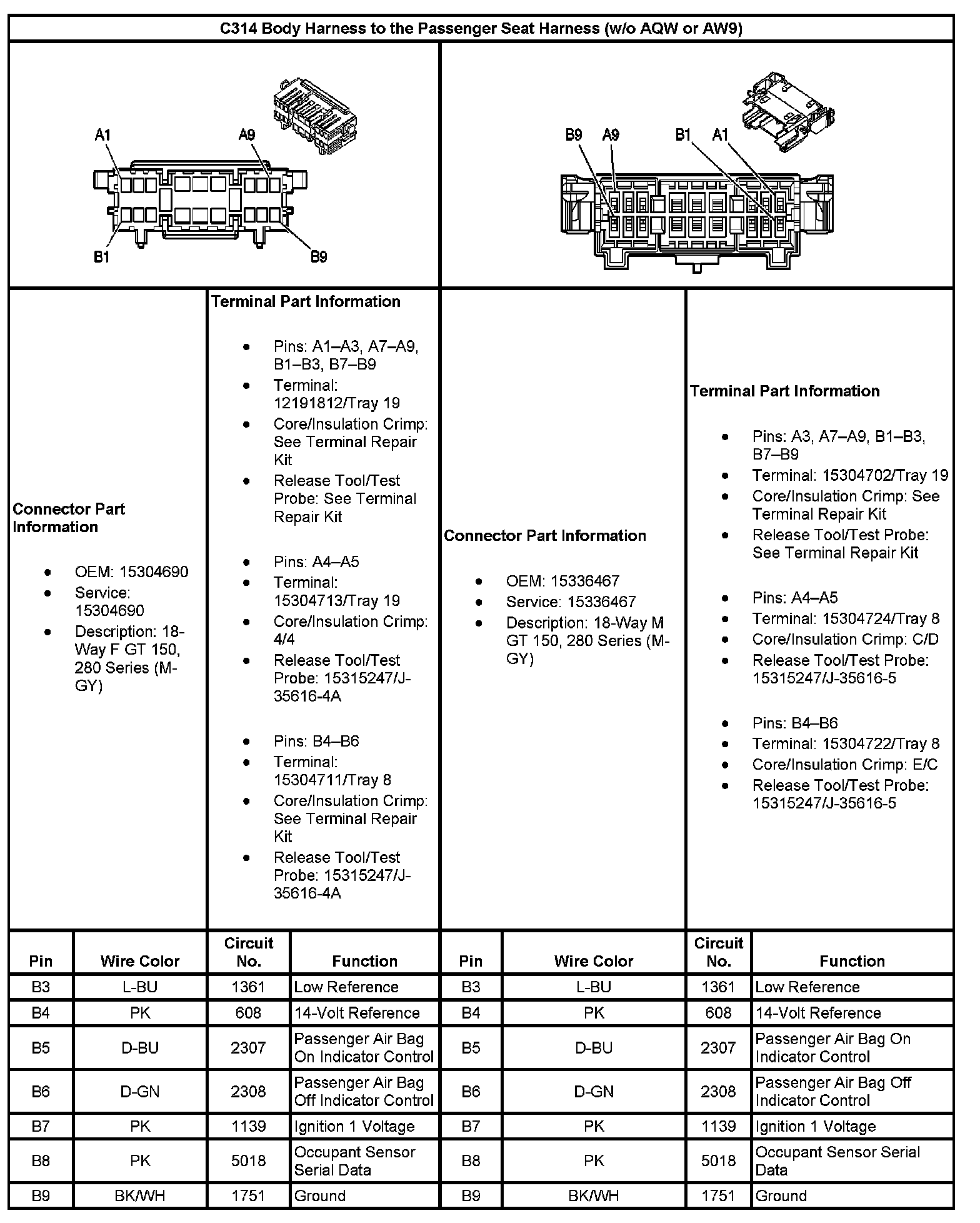 C314 Body Harness To The Passenger Seat Harness (With RPO Code AW9) (Part 1):