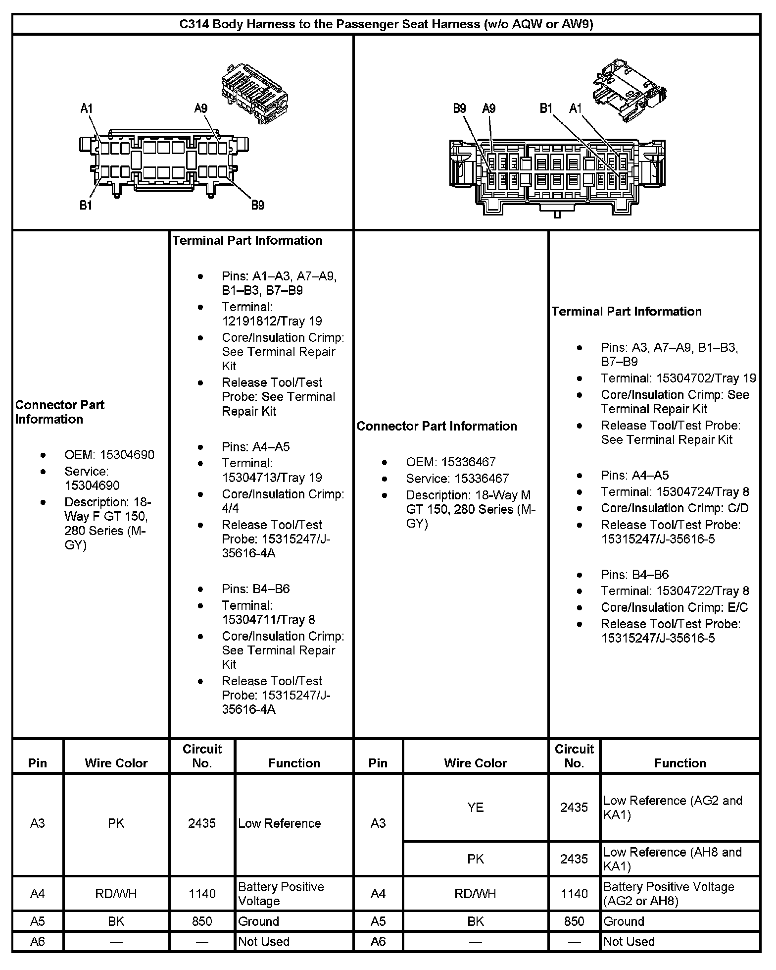 C314 Body Harness To The Passenger Seat Harness (Without RPO Code AQW Or AW9) (Part 2):