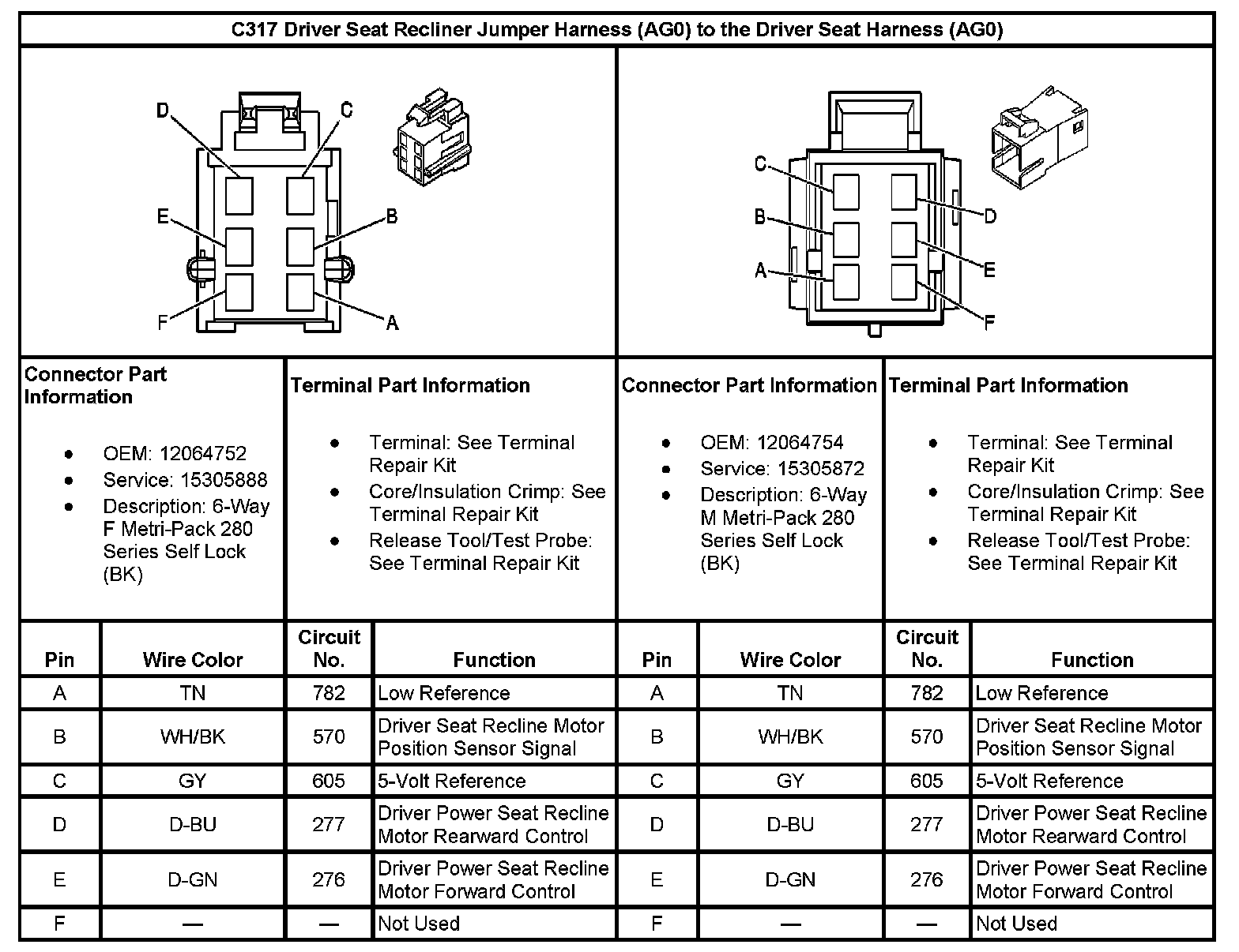C317 Driver Seat Recliner Jumper Harness (With RPO Code AG0) To The Driver Seat Harness (With RPO Code AG0):