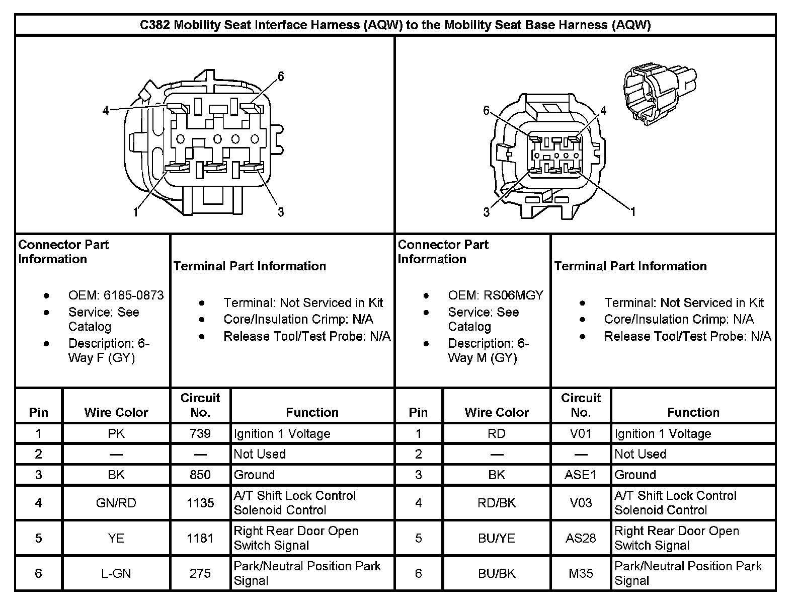 C382 Mobility Seat Interface Harness (With RPO Code AQW) To The Mobility Seat Base Harness (With RPO Code AQW):