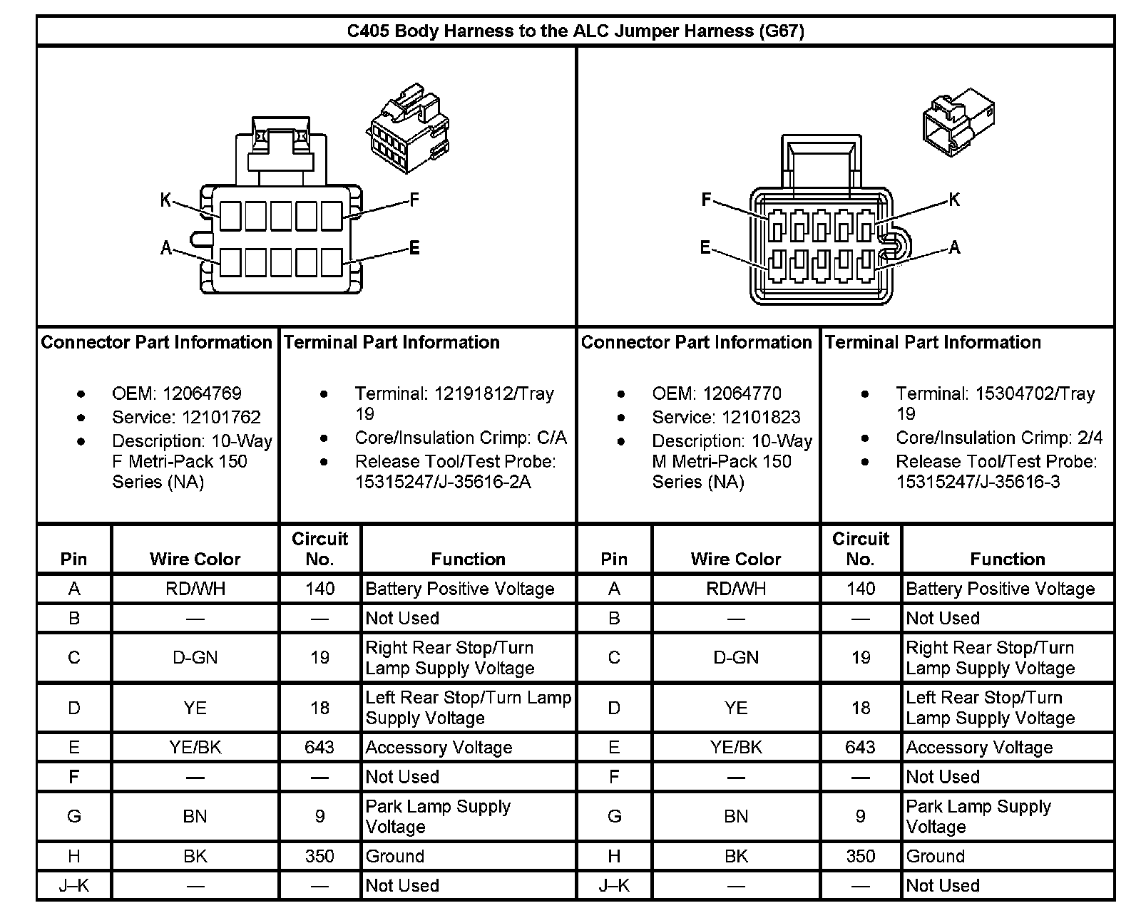 C405 Body Harness To The ALC Jumper Harness (With RPO Code G67):