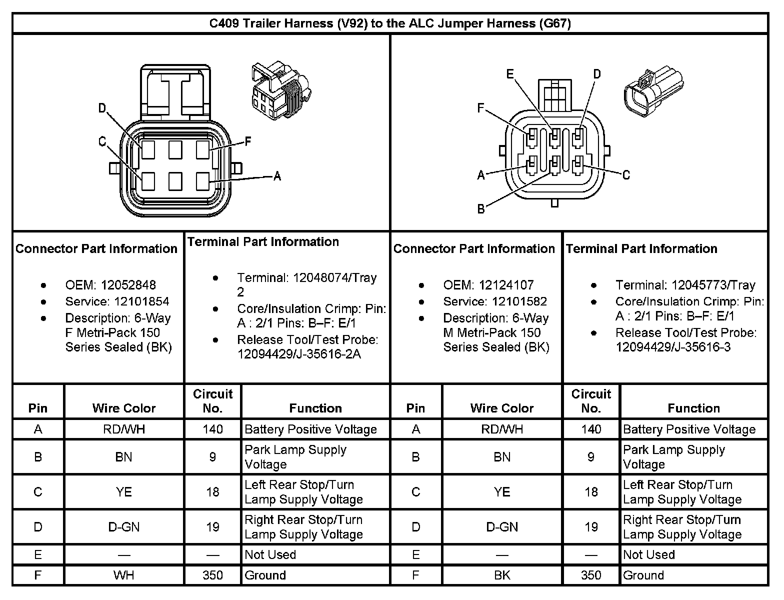 C409 Trailer Harness (With RPO Code V92) To The ALC Jumper Harness (With RPO Code G67):