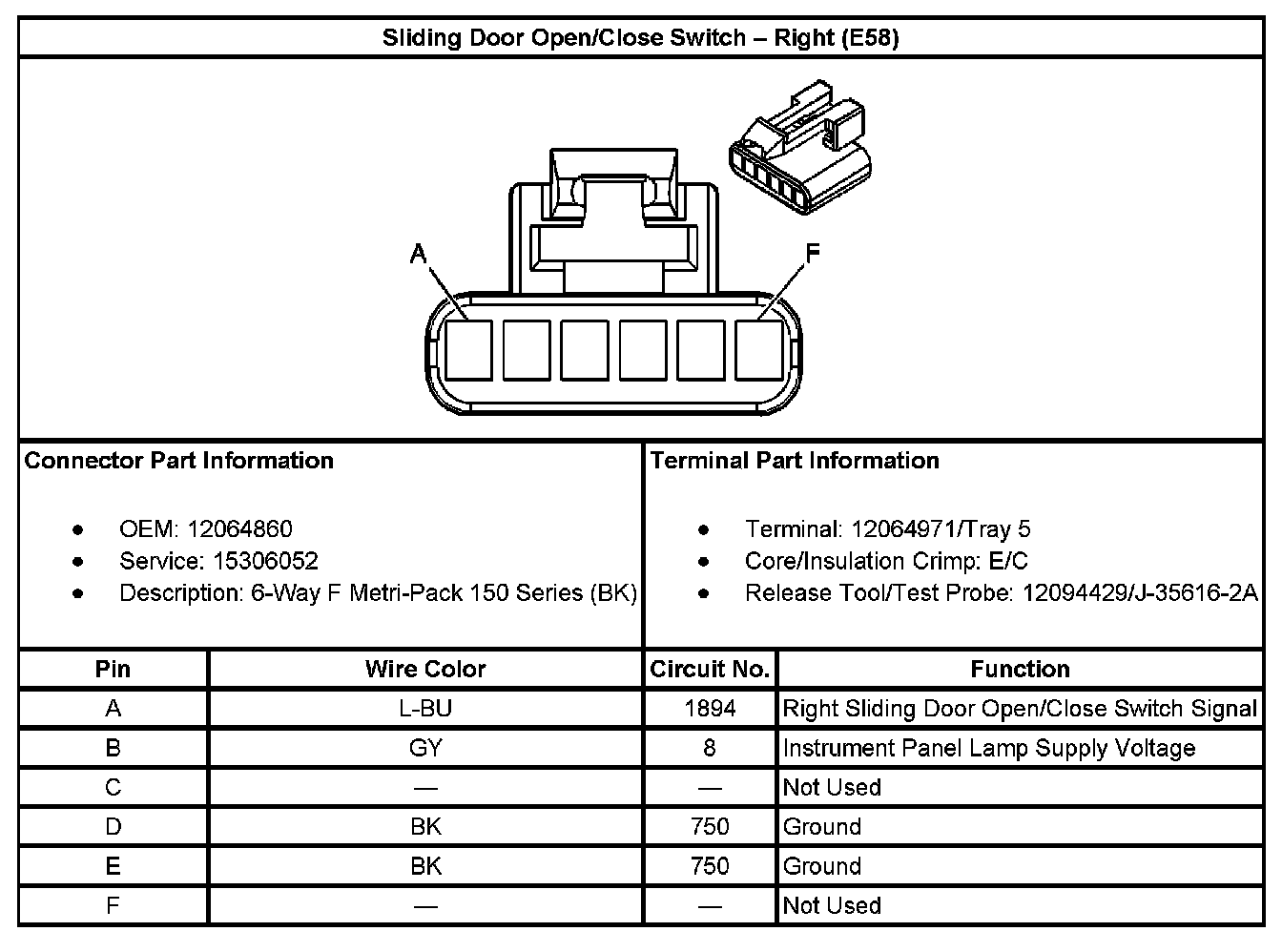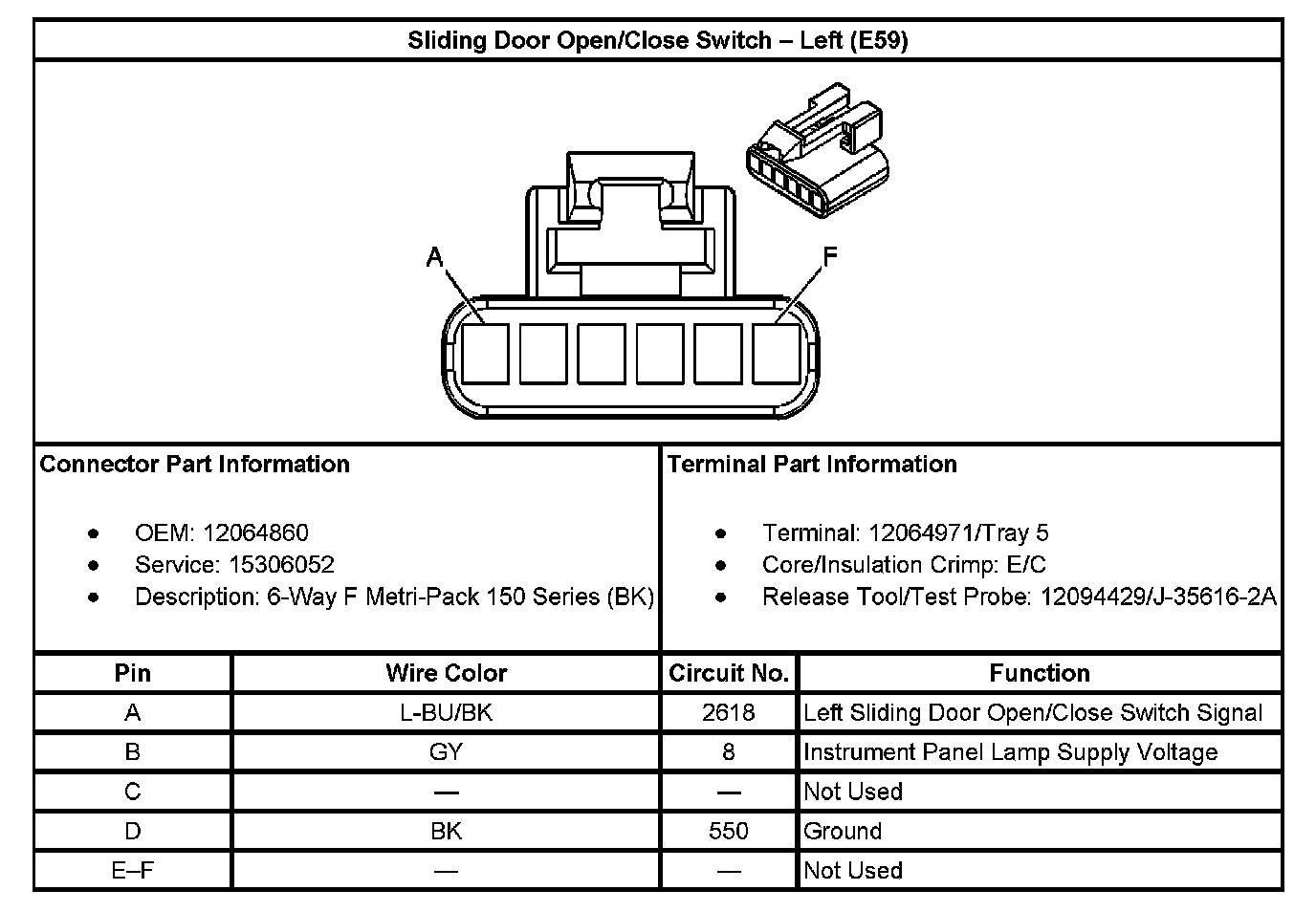 Sliding Door Open/Close Switch - Left (With RPO Code E59):