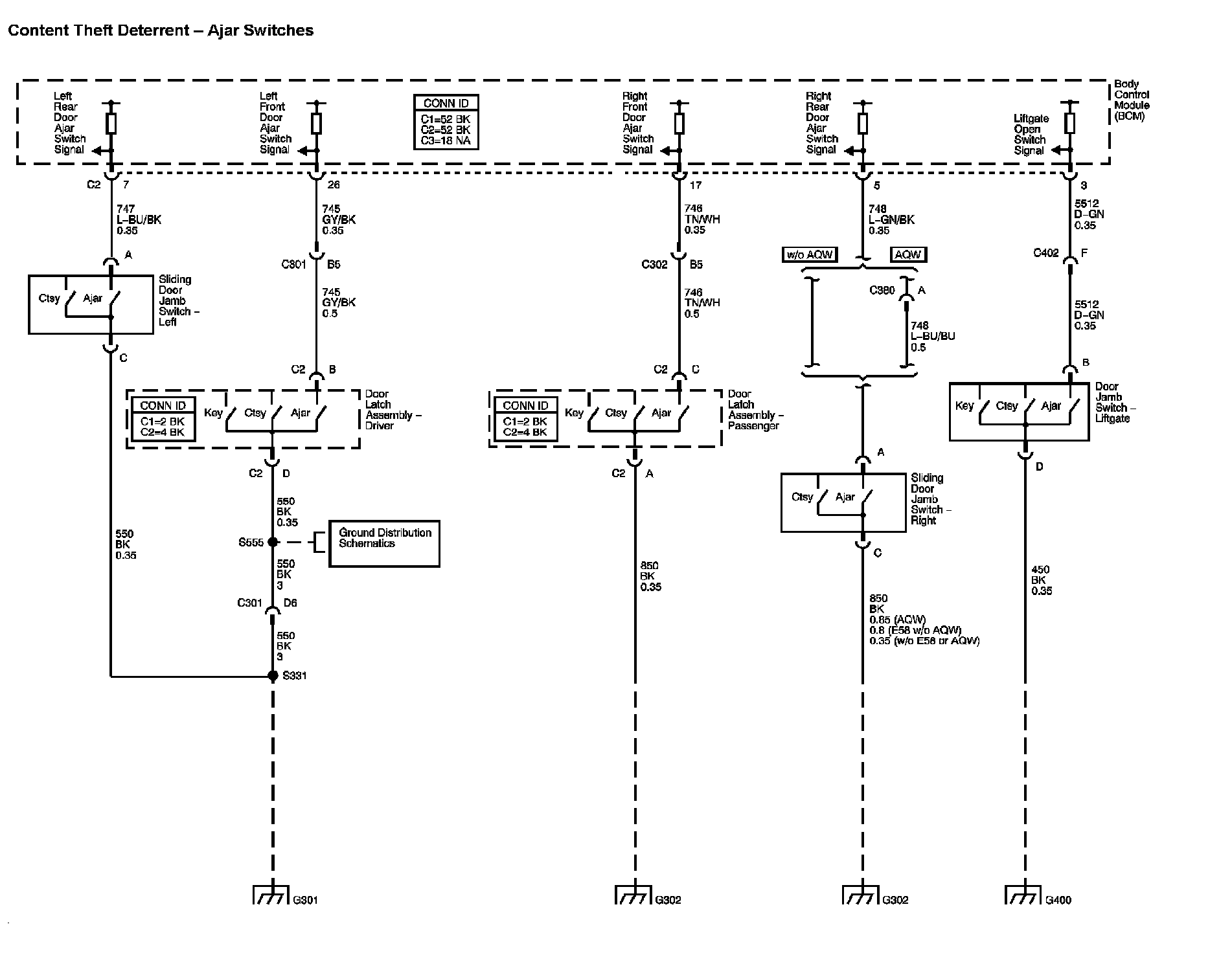 Location: The locations for the Connectors, Grounds, Splices, and Grommets shown within these diagrams can be found via their numbers at Vehicle Locations. Locations