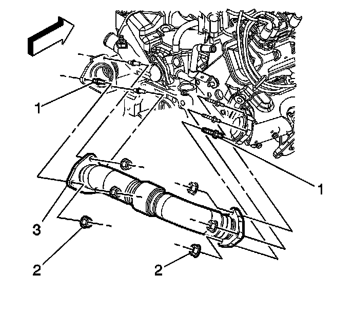 2. Install the exhaust crossover pipe (3).
