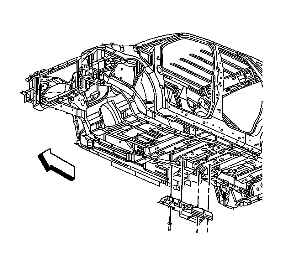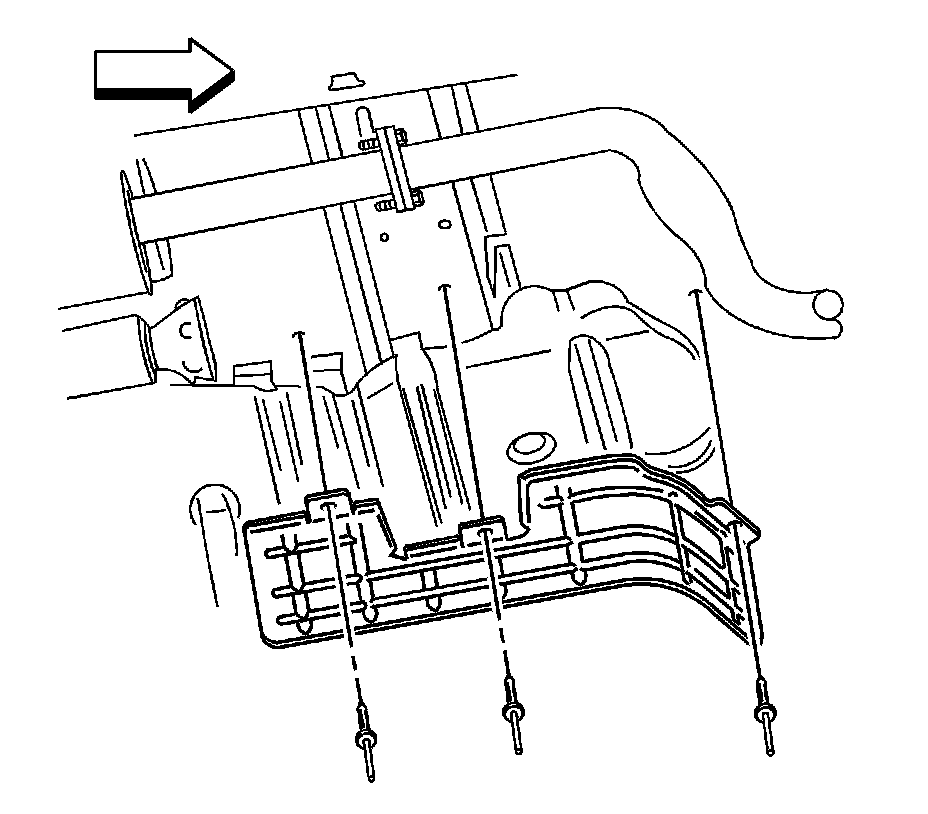 2. Position the heat shield to the underbody, if equipped with a LWB.