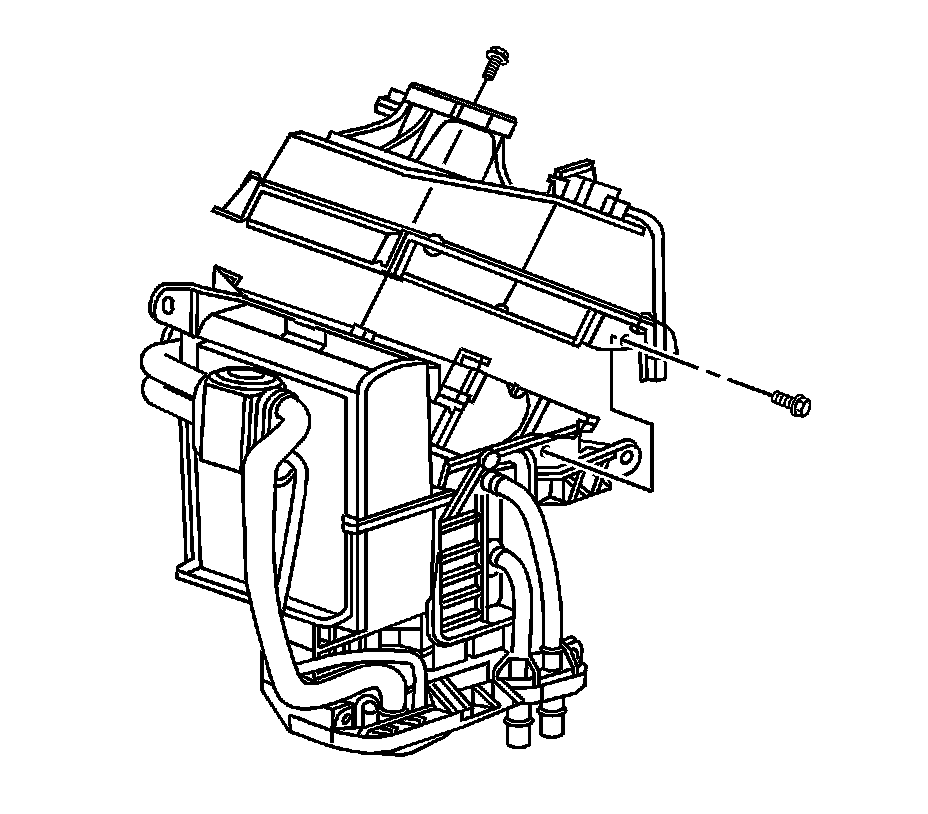 9. Install the blower motor housing to the auxiliary HVAC module assembly.Align the rear tabs of the blower motor housing to the HVAC module.