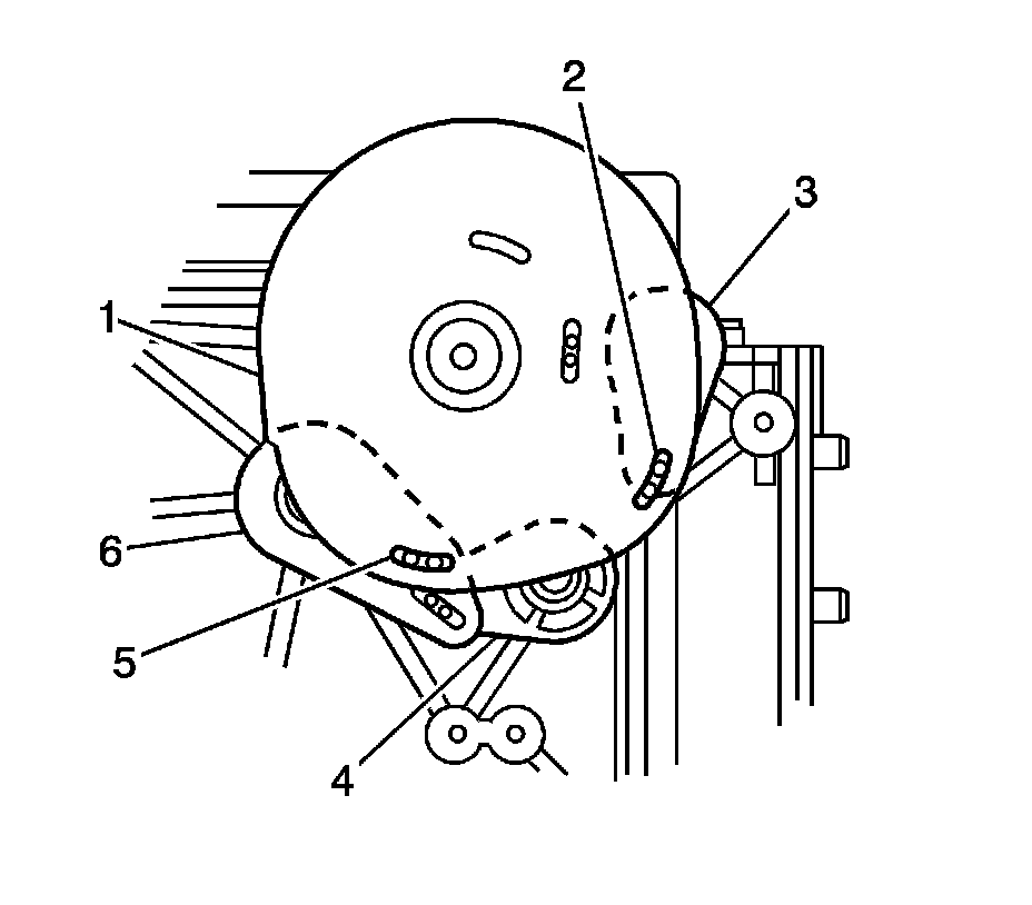 - The pin on lever (6) should be seen through this opening (5) in the cam.