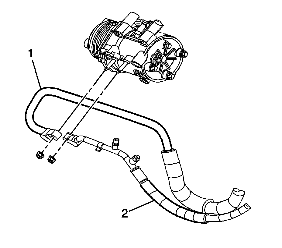 3. Install the A/C suction hose (1) to the A/C compressor.