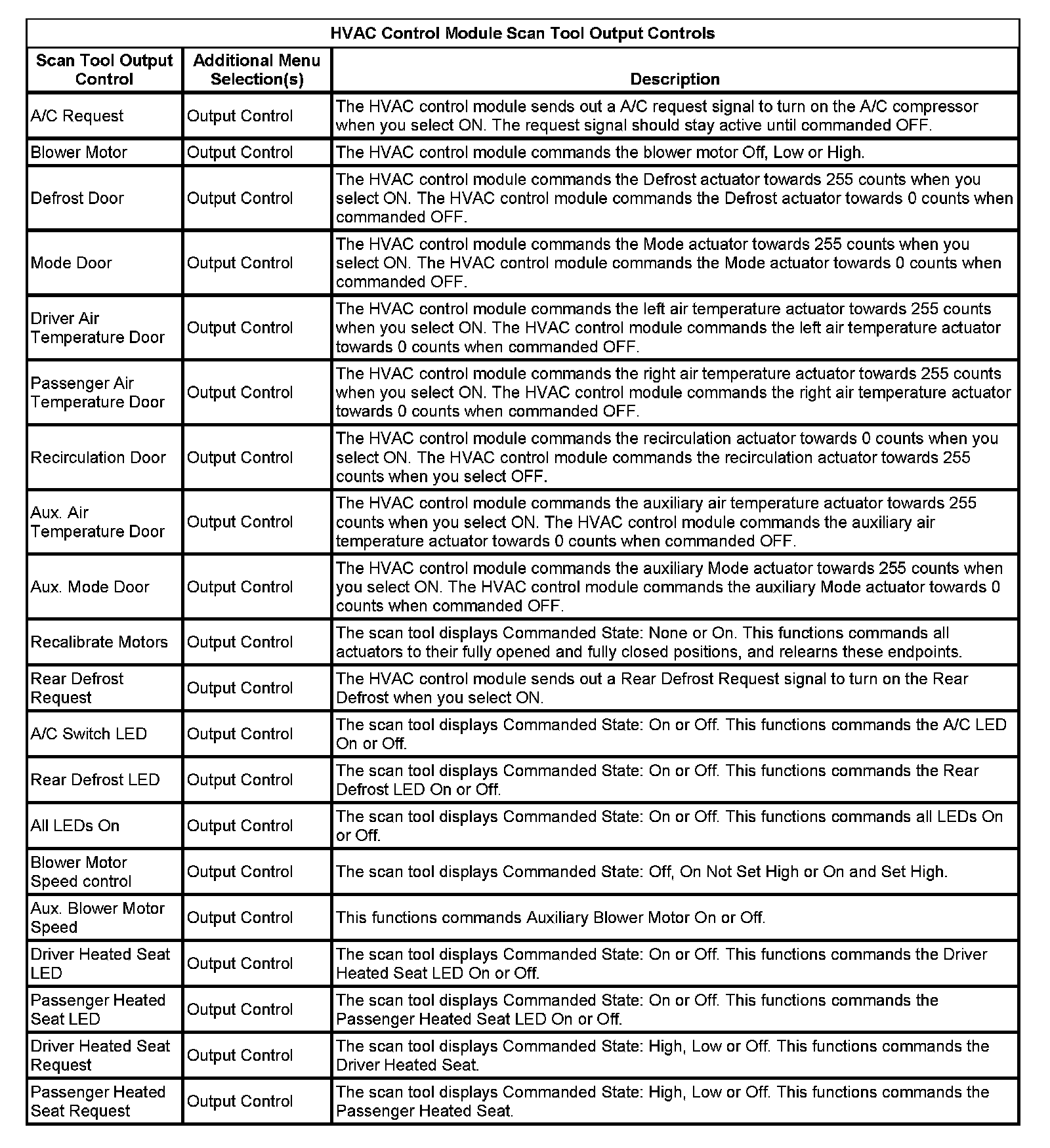 HVAC Control Module Scan Tool Output Controls: