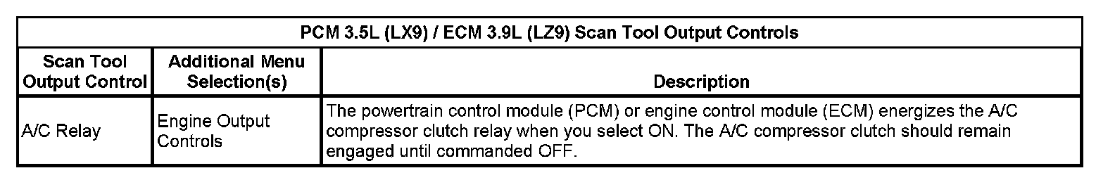 PCM / ECM Scan Tool Output Controls: