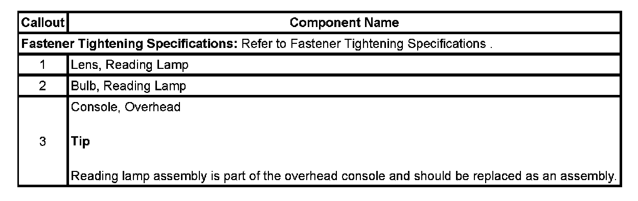 READING LAMP AND BULB REPLACE - OVERHEAD CONSOLE