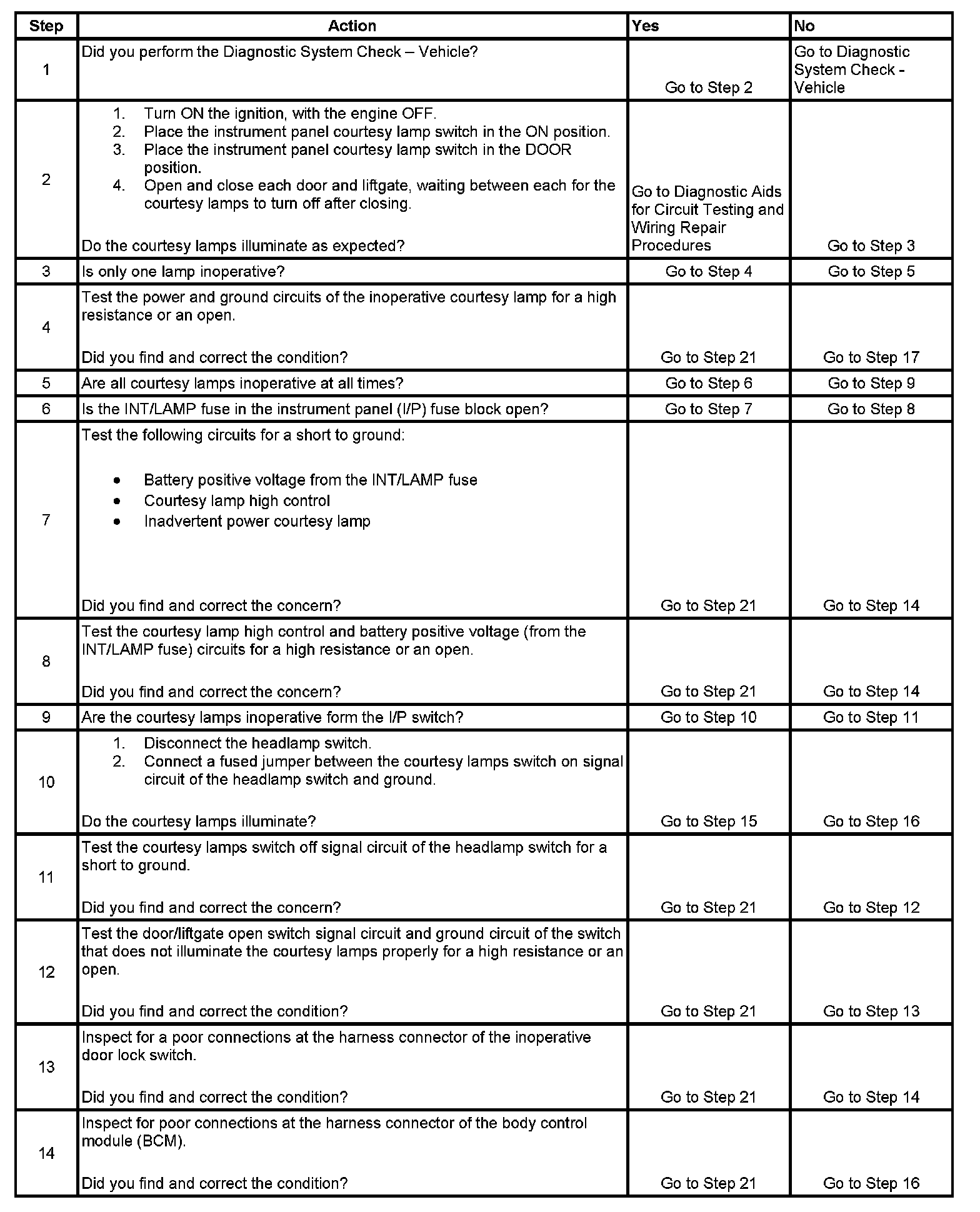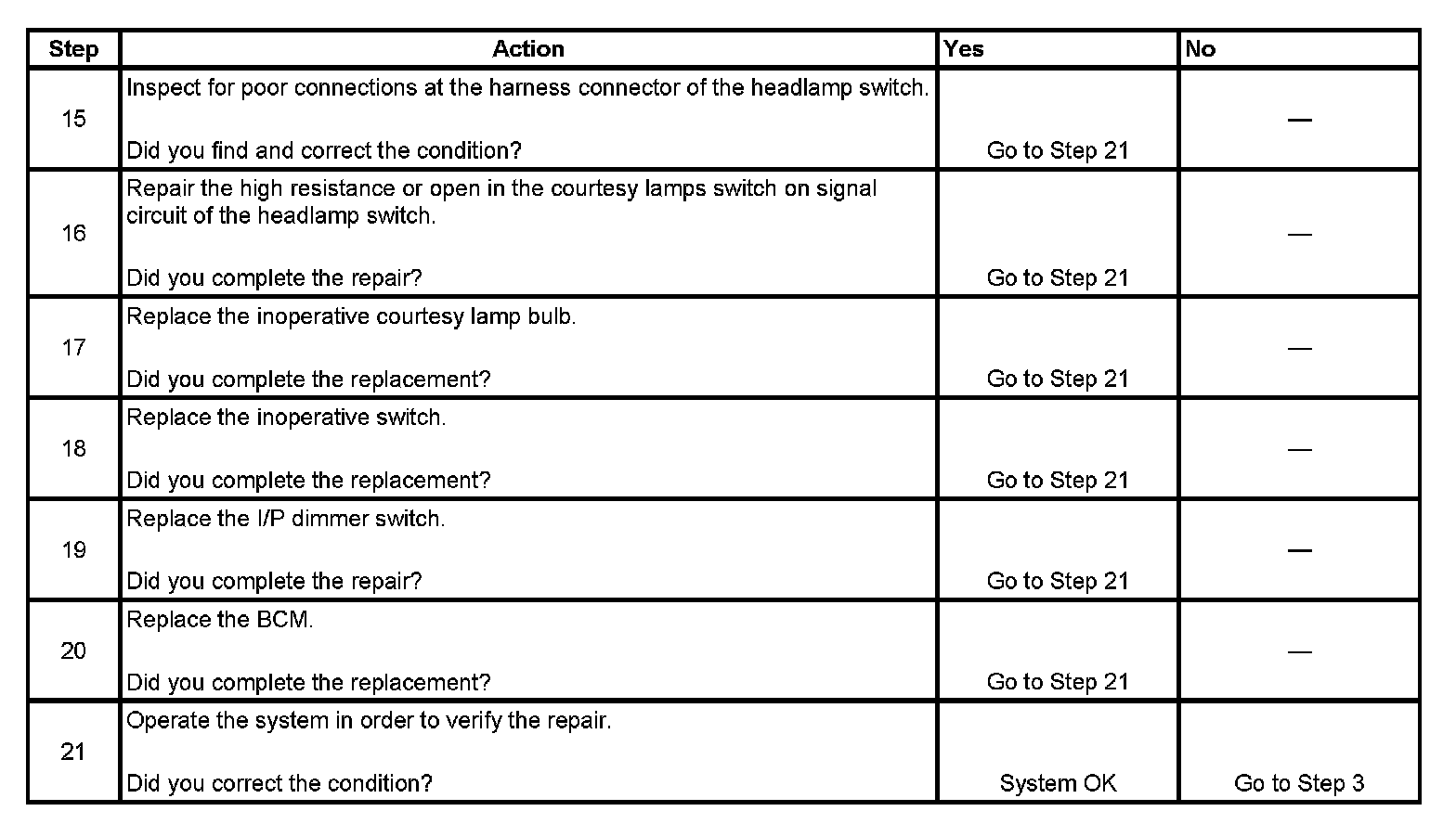 Courtesy Lamps Inoperative