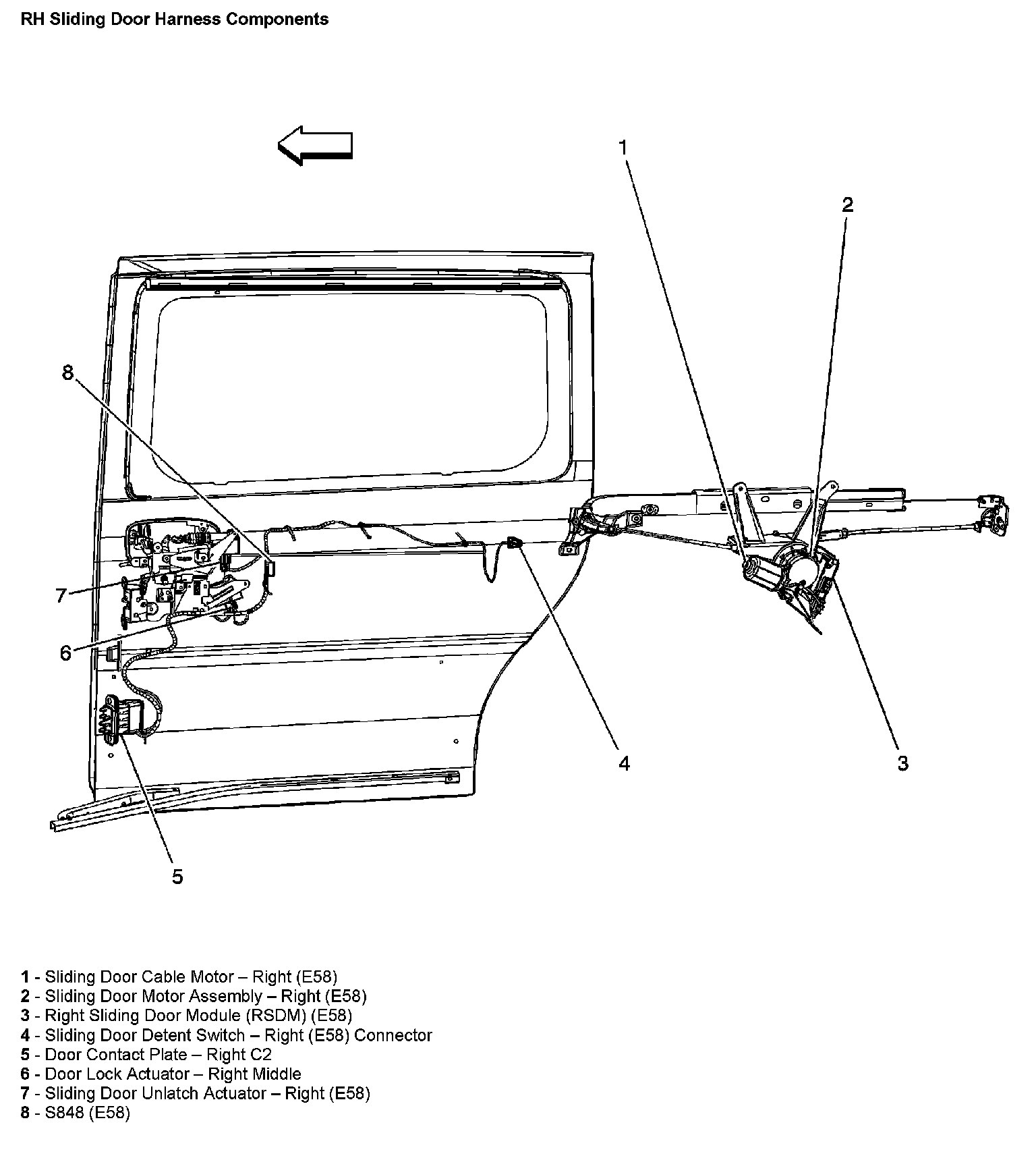 RH Sliding Door Harness Components
