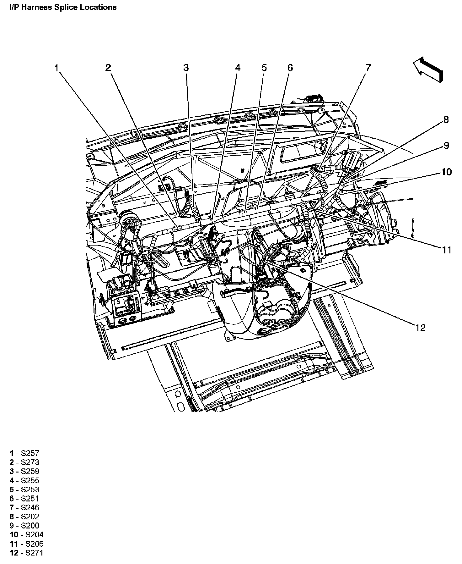 I/P Harness Splice Locations:
